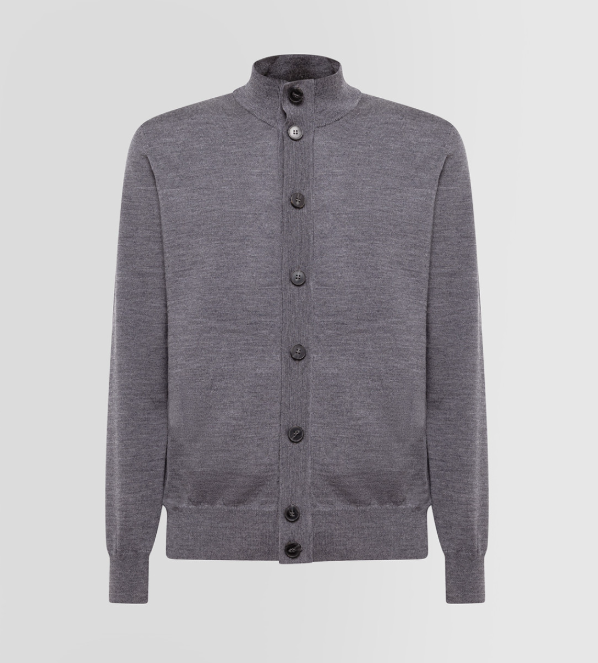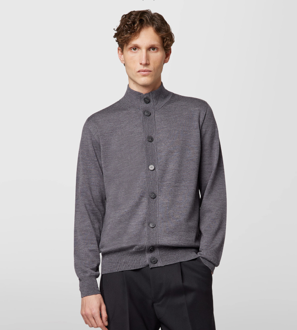 Alpha Studio Cardigan in merinos con bottoni grigio Cardigan mezzo collo in lana merinos. Chiusura con bottoni. Tasche laterali a filo. Maniche lunghe. Collo, fondo maglia e polsini a costine. Regular fit. AU3003E 1005 CARDIGAN BOTTONI MERINOS ANTRACITE Il modello è alto 187 cm e indossa la taglia 50 Dettagli CODICI: AU-3003E – 1005 COLORE: GRIGIO MAGLIE: BLOUSON COMPOSIZIONE: 100% MERINOS.
