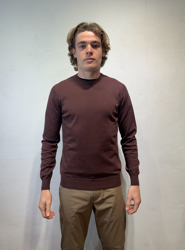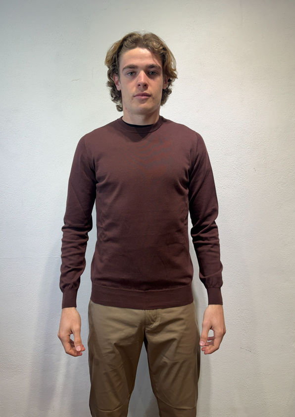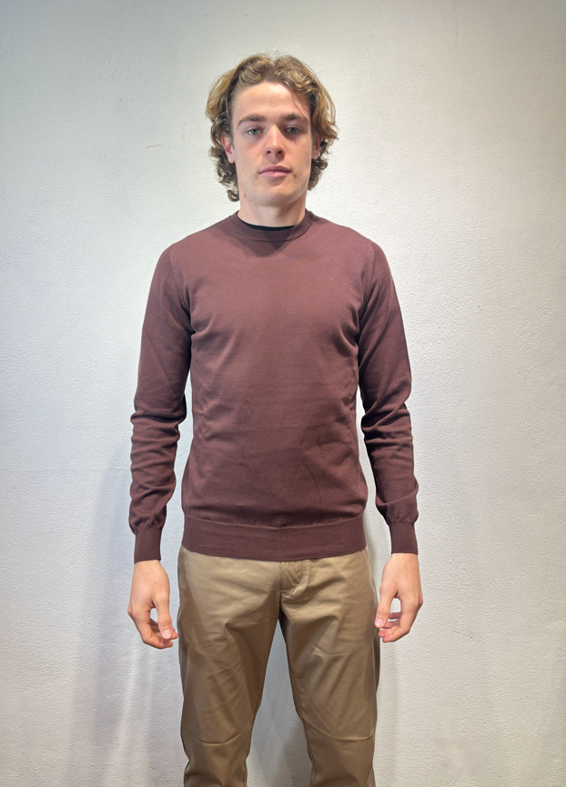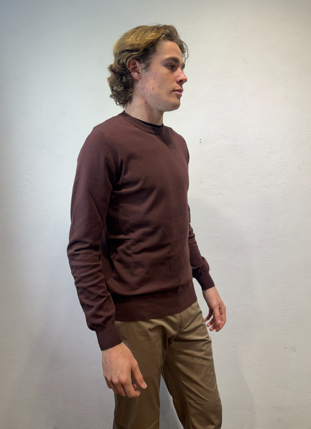 Alpha Studio girocollo in filo di cotone cioccolato Gircollo in filo di cotone a manica lunga. AU5000C 1009 GIROCOLLO BASIC CIOCCOLATO Il modello veste una taglia M /48 Altezza Modello 1,85 peso 72 kg Vestibilità regolare Made in EU
