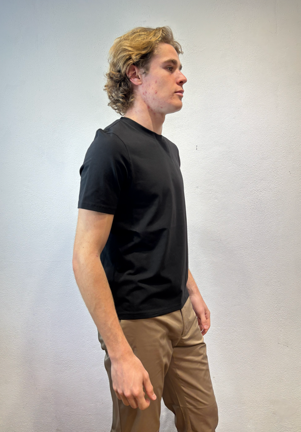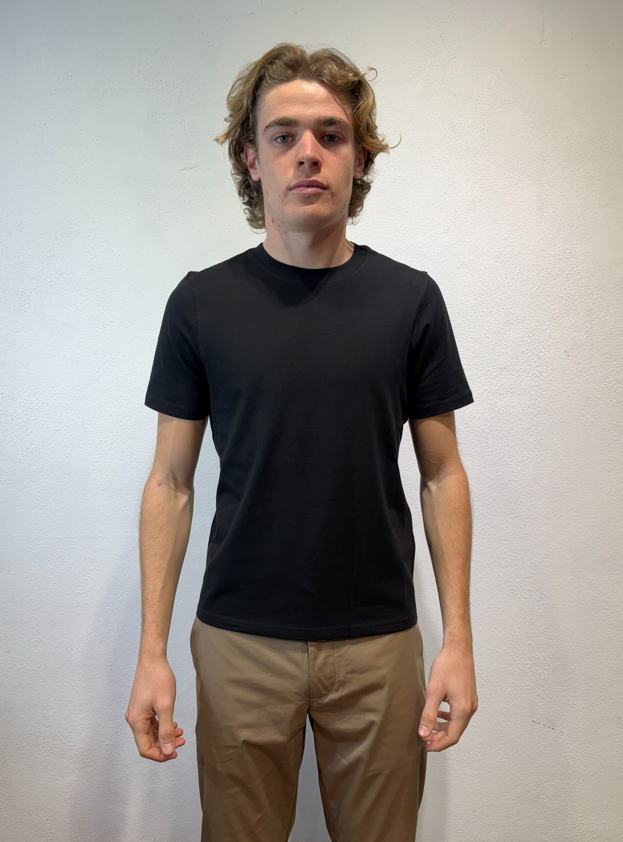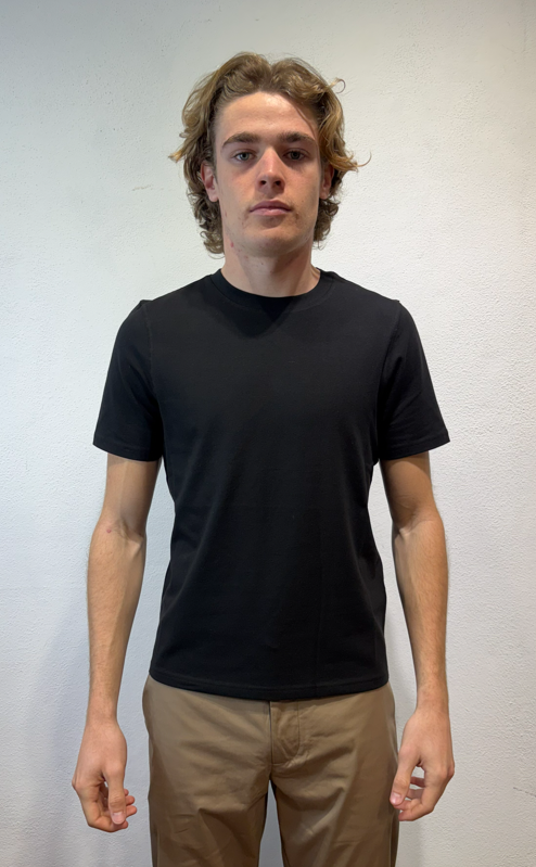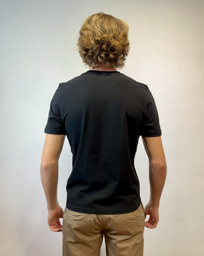 Alpha studio t-shirt mezza manica in cotone stretch blu notte T-shirt in cotone T-SHIRT M/M AU5300C 1001 T-SHIRT M/M BASIC BLU 96% COTONE 4% ELASTAN Il modello veste una taglia M /48 Altezza Modello 1,85 peso 72 kg Vestibilità slim Made in EU