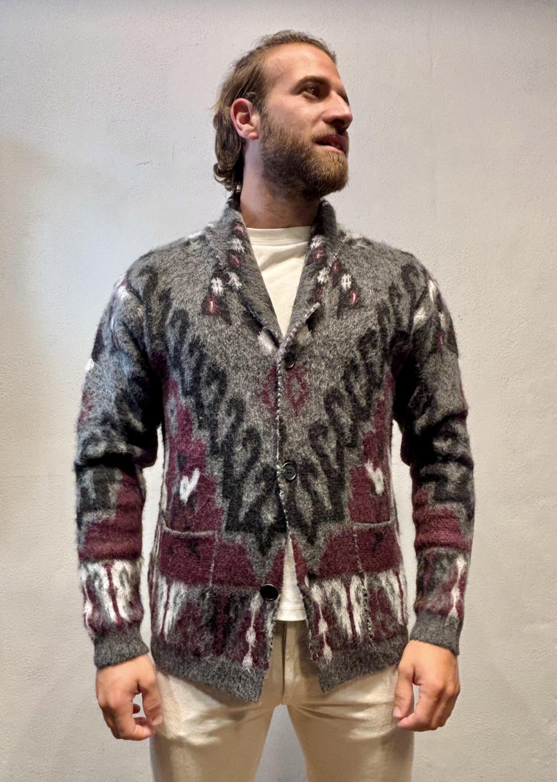 Amaranto Cardigan fantasia jacquard collo sciallato grigio