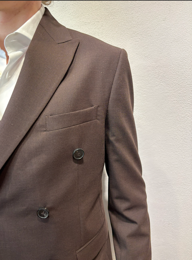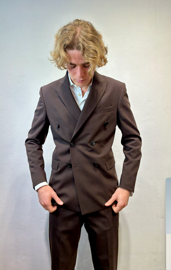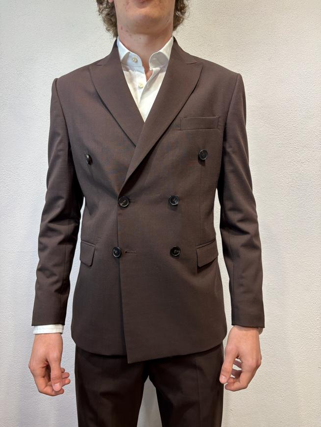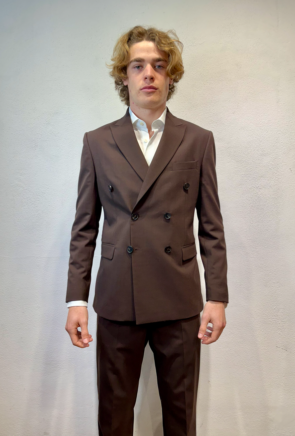 Amarnato giacca doppio petto in misto lana cioccolato Giacca doppio petto in lana, misto lana. Il modello veste una taglia M /48 Altezza Modello 1,85 peso 72 kg Vestibilità regolare Composizione 44 % lana 2% elastan 54% poliestere Made in italy