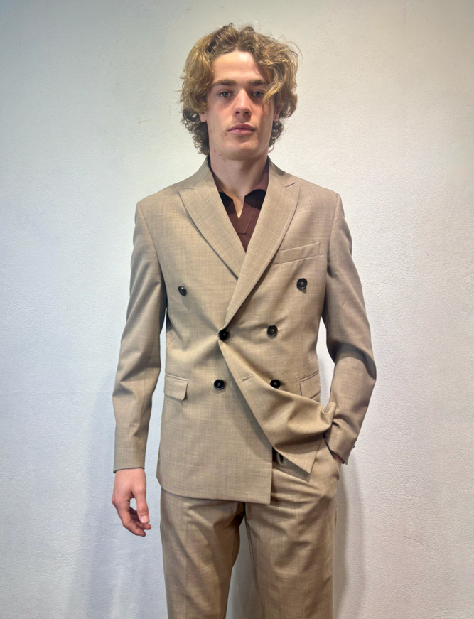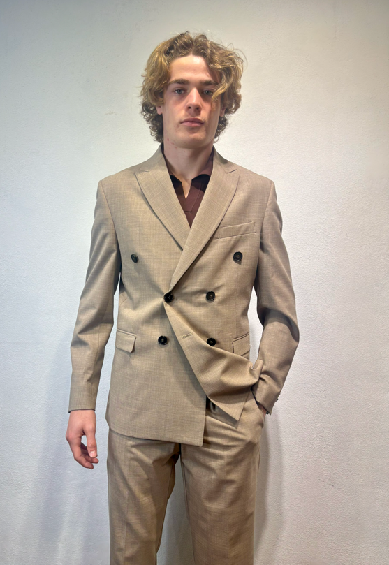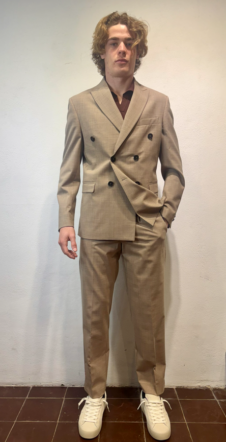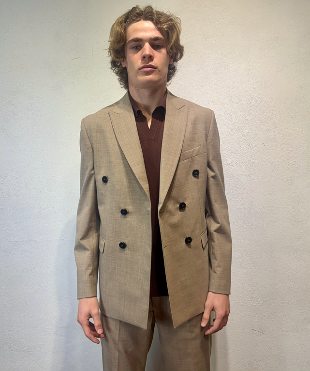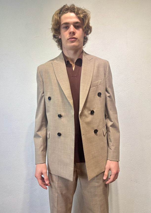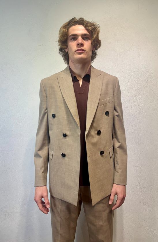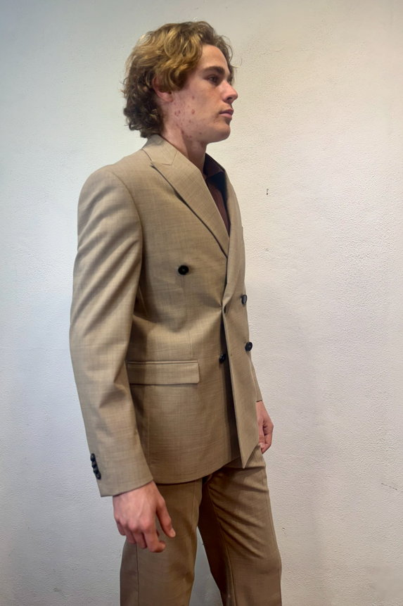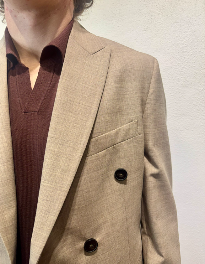 Amarnato giacca doppio petto in misto lana sabbia Giacca doppio petto in lana, misto lana. Il modello veste una taglia M /48 Altezza Modello 1,85 peso 72 kg Vestibilità regolare Composizione 44 % lana 2% elastan 54% poliestere Made in italy