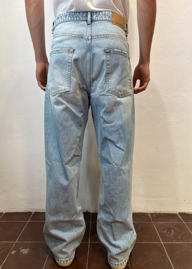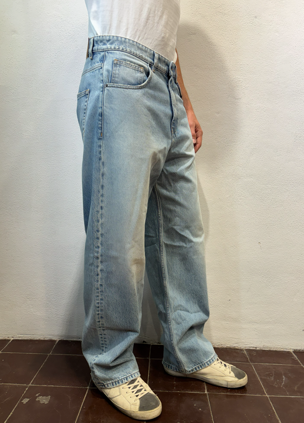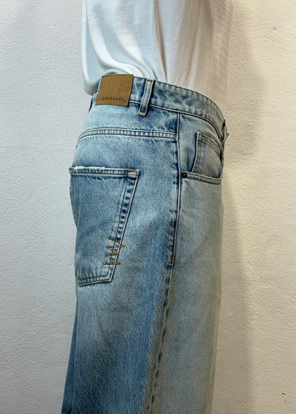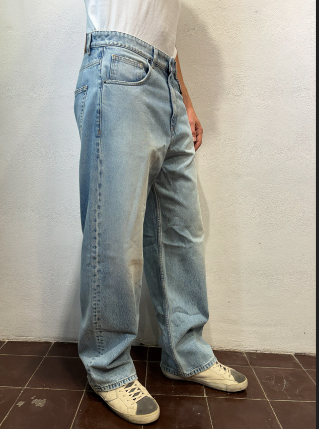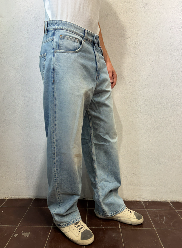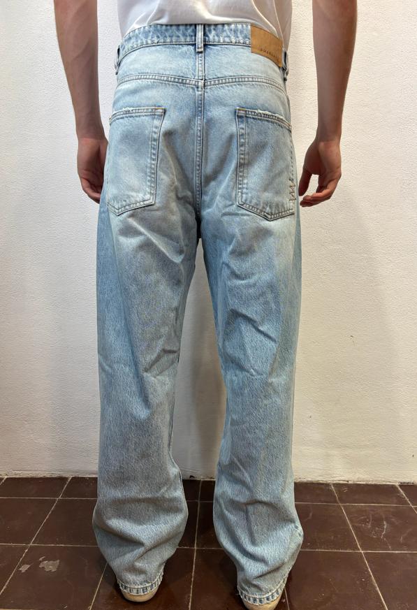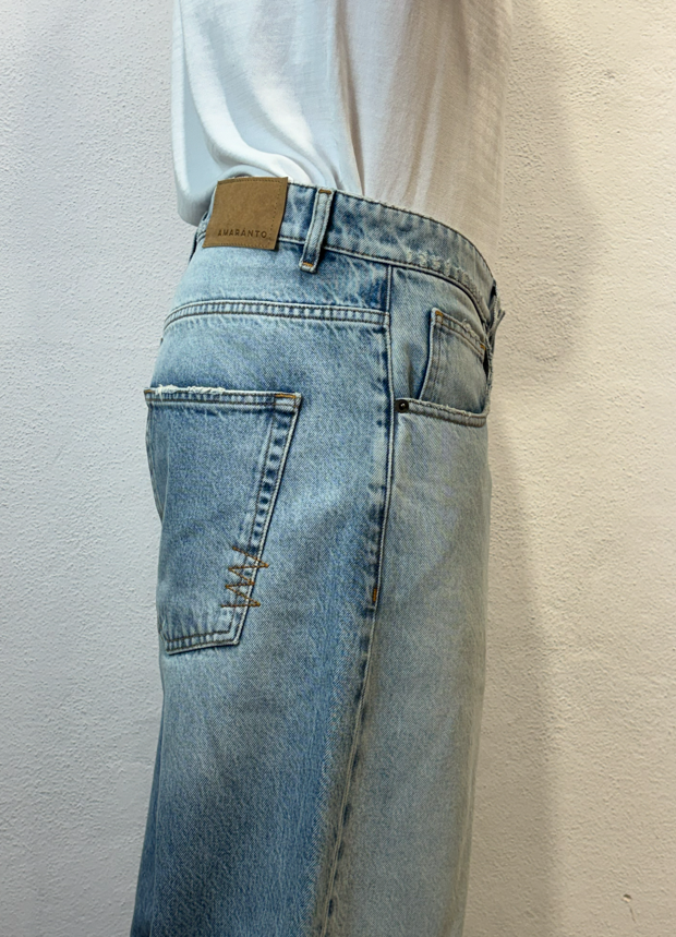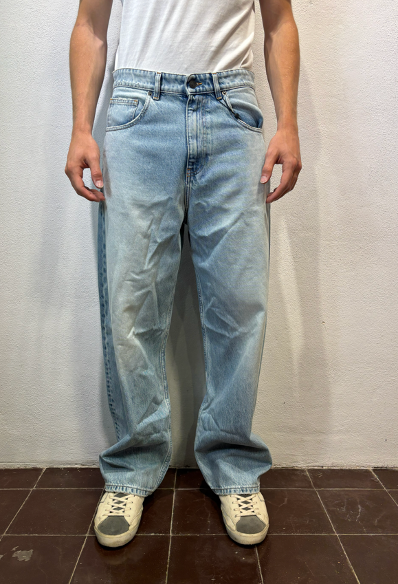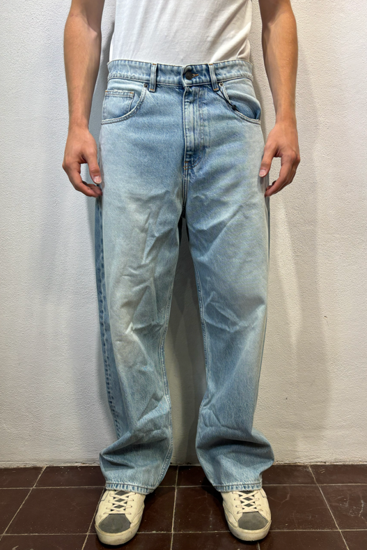 Amaranto Jeans baggy denim chiaro Jeans tela denim fermo 100% cotone fondo 23 cm Il modello veste una taglia M /48 Altezza Modello 1,85 peso 72 kg