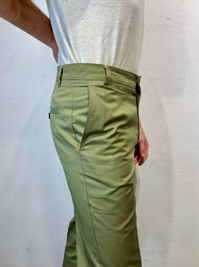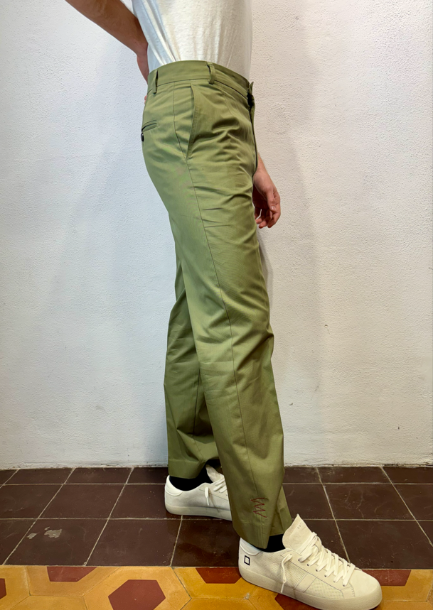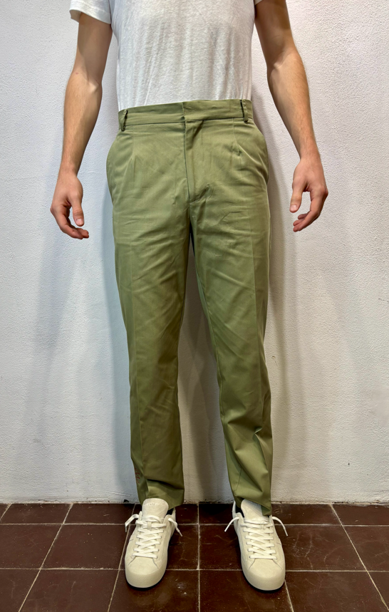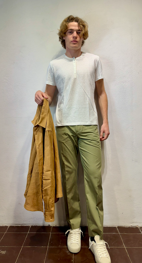Amarnato pantalonein cotone verde mela Pantalone con pinces, bottoni e zip in cotone 100%Vestibilità regolare che scende sulla gamba fino in fondo, senza stringere. Il modello veste una taglia M /48 Altezza Modello 1,85 peso 72 kg Vestibilità regolare Composizione 100% cotone Made in italy