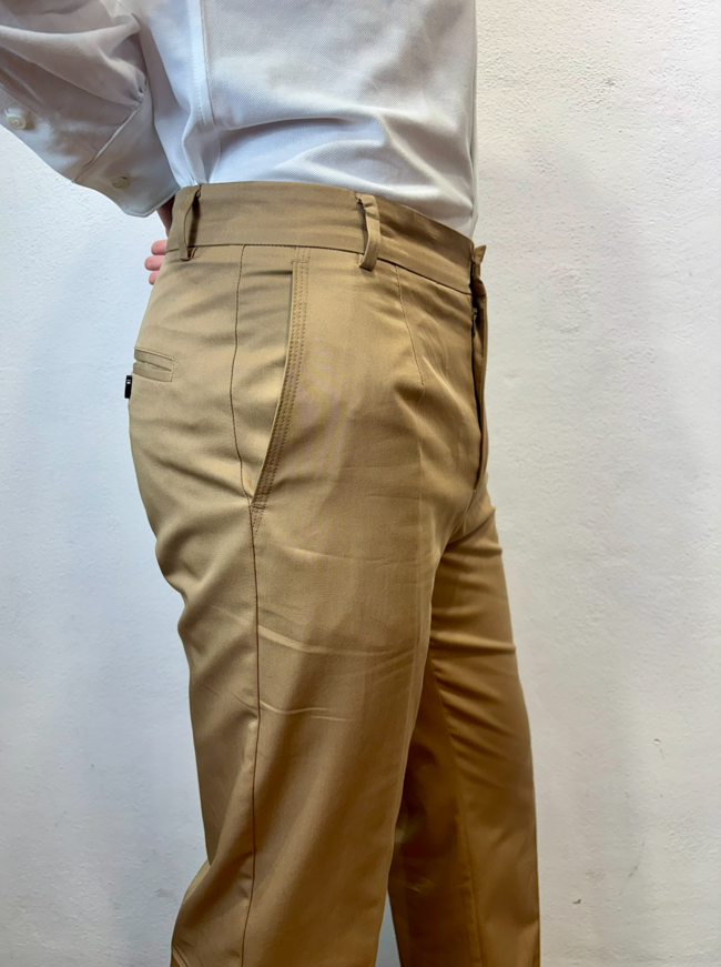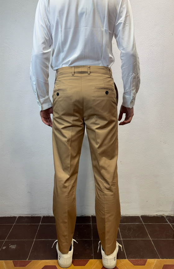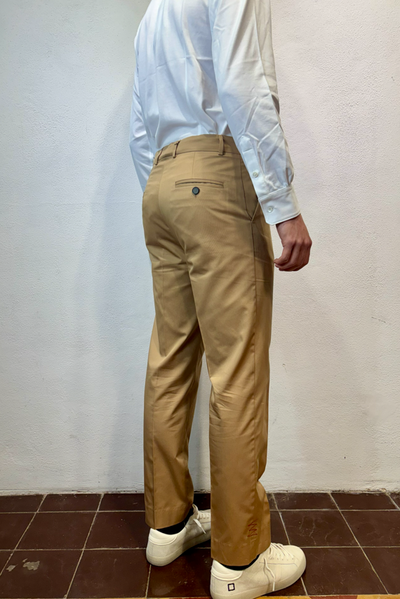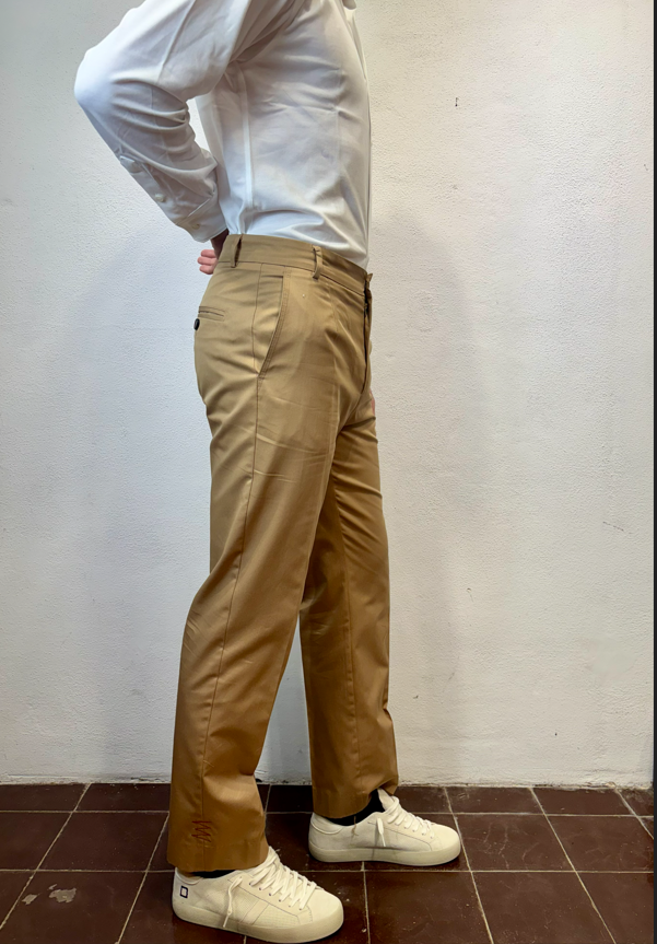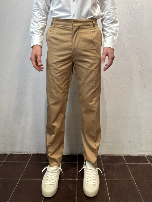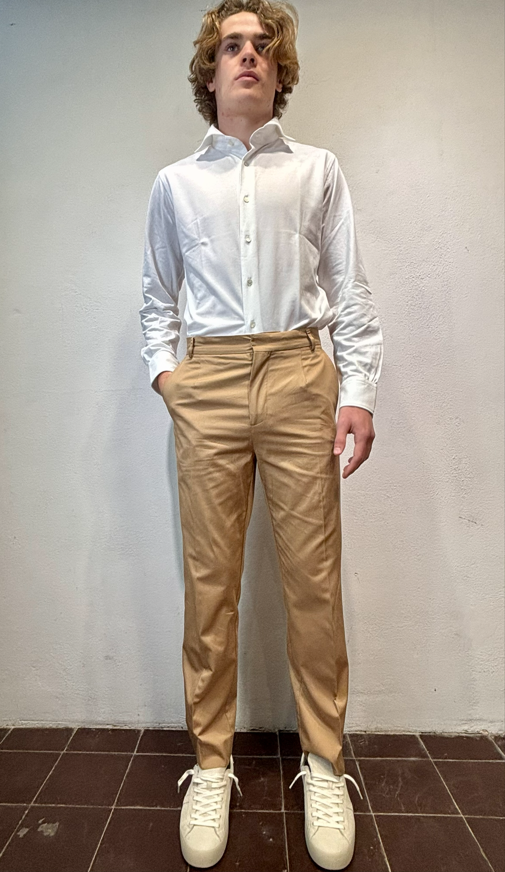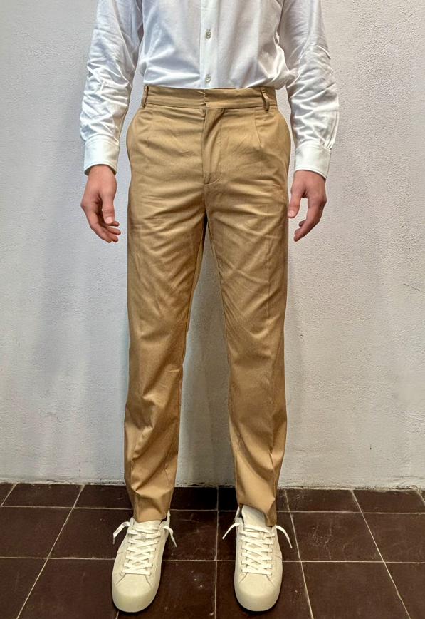 Amarnato pantalonein cotone sabbia Pantalone con pinces, bottoni e zip in cotone 100%Vestibilità regolare che scende sulla gamba fino in fondo, senza stringere. Il modello veste una taglia M /48 Altezza Modello 1,85 peso 72 kg Vestibilità regolare Composizione 100% cotone Made in italy
