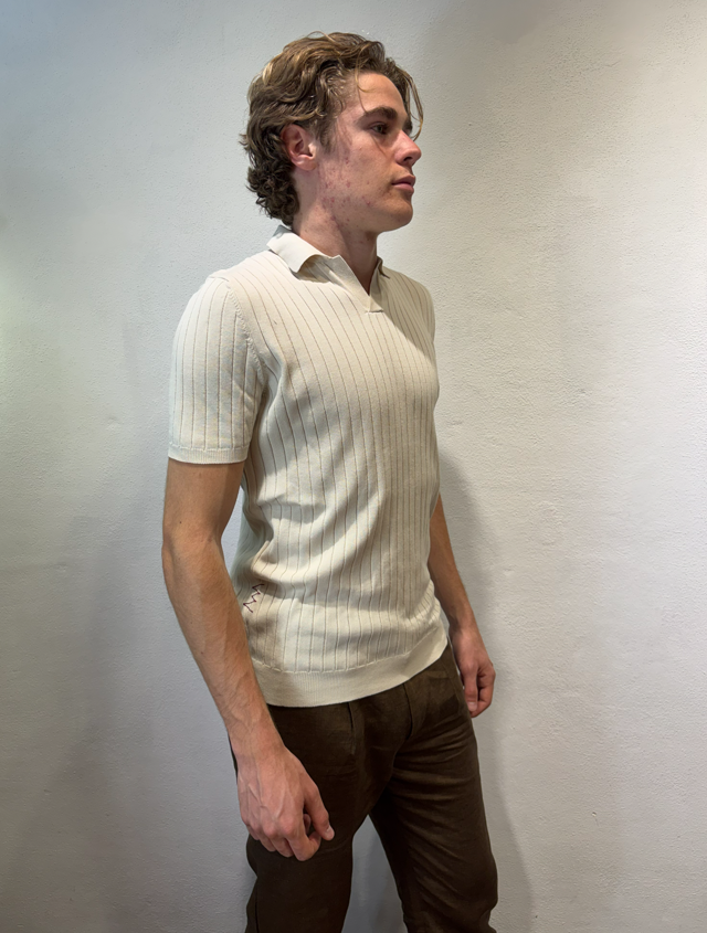 Amaranto Polo scollo v gessato tono su tono gesso Polo scollo v in cotone fantasia gessato tono su tono Composizione 100% B9AB0048 GESSO POLO SCOLLO V GES GESSO