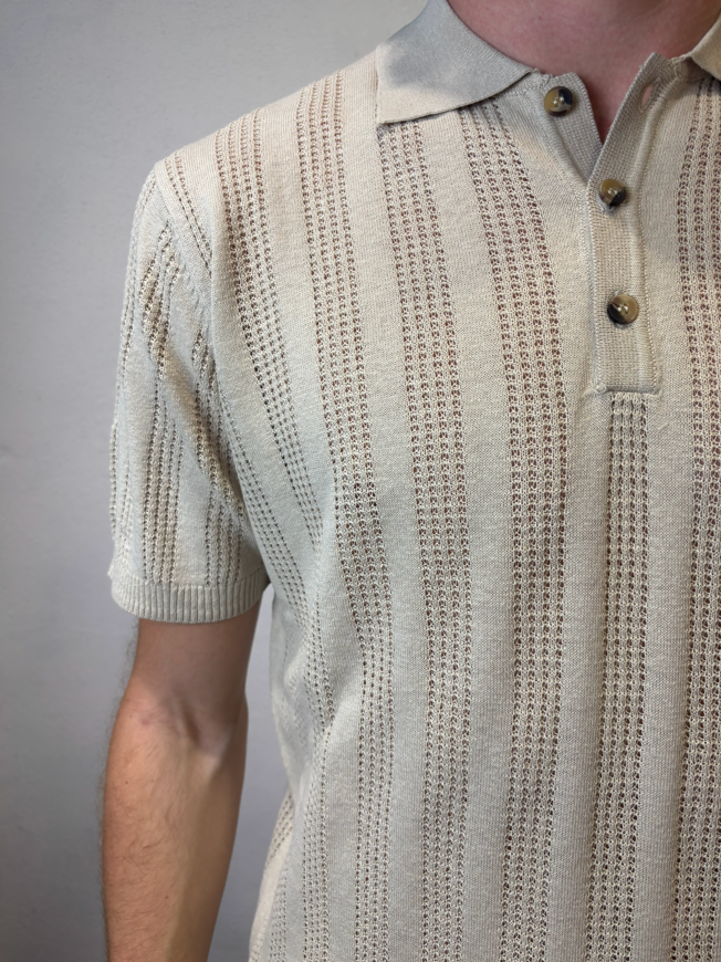 Polo mezza manica lavorato in misto lino Mastice