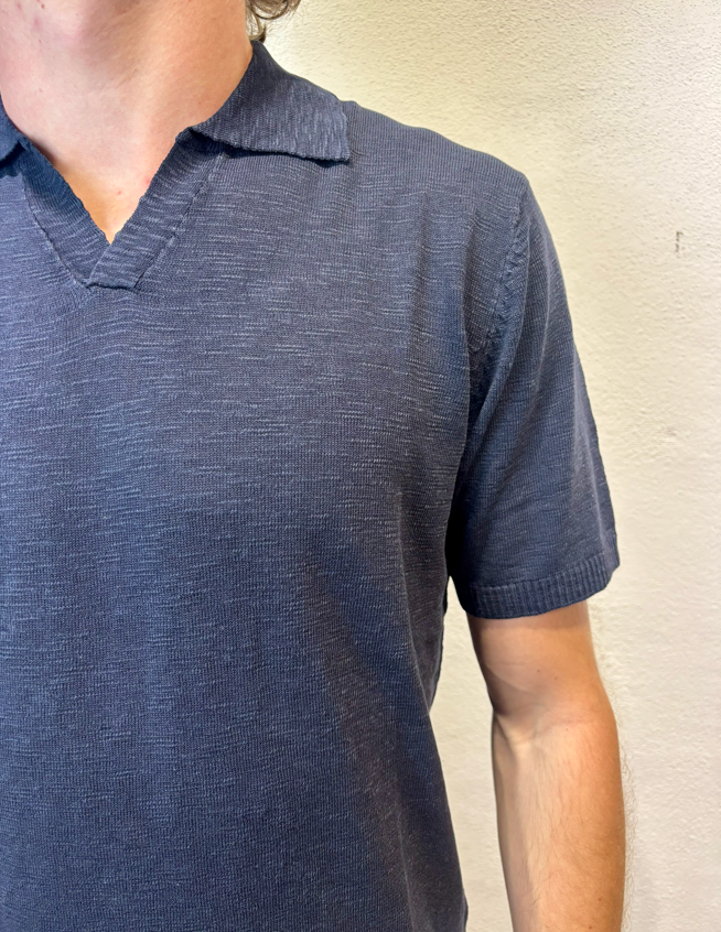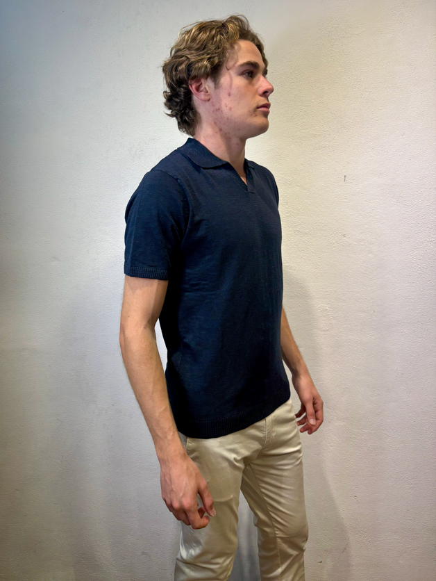 Anima polo scollo v blu Polo scollo v effetto lino Composizione 100% cotone Vestibilità slim Il modello veste una media Altezza modello 1,86 peso 72 kg