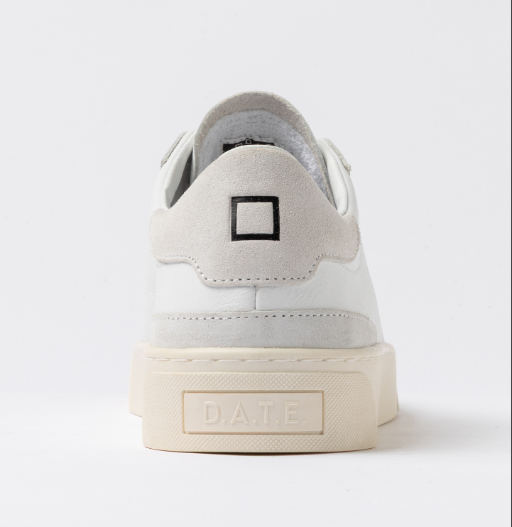 D.A.T.E Sneakers in pelle ”sonica” bianco Sneakers in pelle bianca. Dettagli & Vestibilità La scritta D.A.T.E. è impressa sulla linguetta in pelle. I lacci sono in cotone. Il logo quadrato è impresso nel talloncino in suede nero. Il nome del modello è impresso sul lato esterno. Fodera in pelle e spugna di cotone. Soletta interna rialzata di 2,5 cm per un miglior comfort. La suola in gomma, è cucita e alta 3 cm. Tutti i materiali selezionati sono Made in Italy. Vestibilità: REGULAR Codice: M441-SO-CA-WY Istruzioni per la cura Raccomandiamo di seguire alcune istruzioni per preservare queste sneakers: Evitare il contatto con acqua, sostanze contenenti alcol e in generale qualsiasi prodotto abrasivo. In caso di contatto con l’acqua, è fondamentale lasciare che le sneakers si asciughino completamente prima di procedere alla pulizia. Pulire la pelle liscia o martellata con un panno morbido e umido. Quando la pelle sarà completamente asciutta, applicare della crema neutra e del lucido di buona qualità con un panno morbido, eseguendo piccoli movimenti circolari. Per pulire le parti in suede utilizzare una spazzola asciutta a setole morbide e spazzolare con attenzione le singole parti in suede.