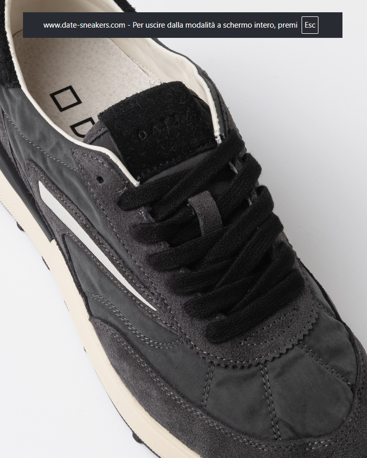 D.A.T.E. sneakers Athleta touch antracite Date Sneakers bassa in nylon e suede colore grigio. Dettagli & Vestibilità Sulla linguetta la scritta D.A.T.E. è impressa. I lacci sono in cotone. Il logo quadrato è ricamato sul talloncino in suede hairy colore nero. Dettaglio laterale impresso colore bianco. Fodera in pelle e spugna di cotone. Il soletto interno è rialzato di 2.5 cm per un migliore comfort. La suola in gomma alta 2 – 3,5 cm. Tutti i materiali selezionati sono Made in Italy. Vestibilità: REGULAR Codice: M431-AT-TC-AN