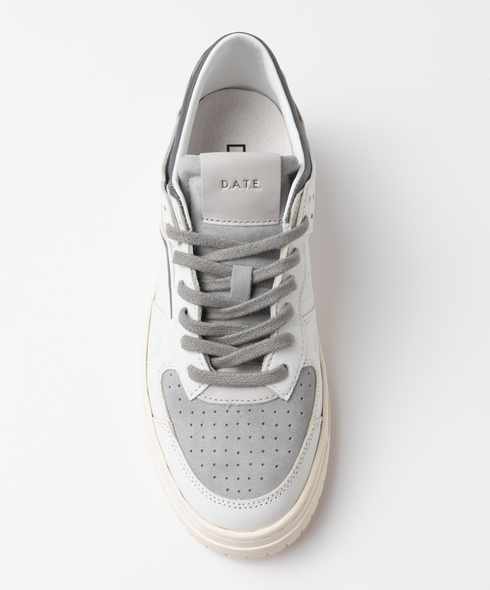 DATE Sneakers Torneo Colored White/Grey TORNEO COLORED M431 TO CO WY BIANCO GRIGIO Dettagli prodotto Sneakers bianca in vero cuoio con linguetta forata e punta in suede. Inserti colorati in contrasto. Patch logo sulla linguetta. Suola over in gomma rigida. Soletta in vero cuoioCaratteristiche e composizioneCodice colore fornitore – Genere Uomo Tomaia Cuoio Suola Altri materiali Stagione 2025 Autunno Inverno Soletta Cuoio e Tessuto Interno Cuoio e Tessuto Fascia Età Adulto Fantasia Color Block Chiusura Lacci
