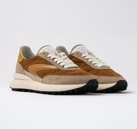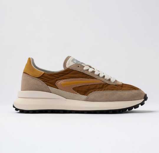 D.A.T.E Athleta nylon colore cuoio Running sneakers in nylon color cuoio con dettagli in suede beige. Dettagli & Vestibilità La label con scritta D.A.T.E. è cucita sulla linguetta in nylon. I lacci sono in cotone. Il logo quadrato è impresso sul talloncino in suede color senape. L’inserto sul lato esterno è in nappa tortora con dettaglio stampato colore senape. La fodera è in pelle e tessuto. Il soletto interno è rialzato di 2.5 cm per un migliore comfort. La suola in gomma è alta 2 – 3,5 cm. Tutti i pellami selezionati sono Made in Italy. Vestibilità: REGULAR Codice: M441-AT-NY-CU Istruzioni per la cura Raccomandiamo di seguire alcune istruzioni per preservare queste sneakers: Evitare il contatto con acqua, sostanze contenenti alcol e in generale qualsiasi prodotto abrasivo. In caso di contatto con l’acqua, è fondamentale lasciare che le sneakers si asciughino completamente prima di procedere alla pulizia. Pulire la pelle liscia o martellata con un panno morbido e umido. Quando la pelle sarà completamente asciutta, applicare della crema neutra e del lucido di buona qualità con un panno morbido, eseguendo piccoli movimenti circolari. Per pulire le parti in suede utilizzare una spazzola asciutta a setole morbide e spazzolare con attenzione le singole parti in suede.