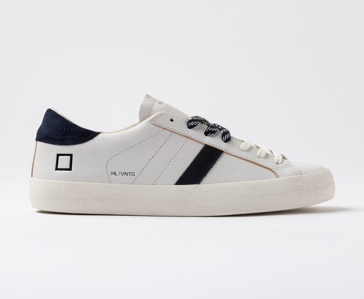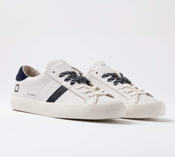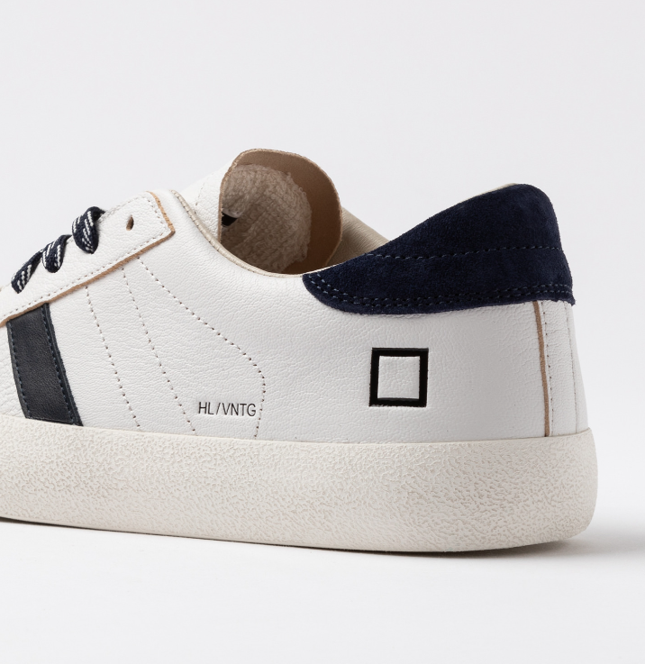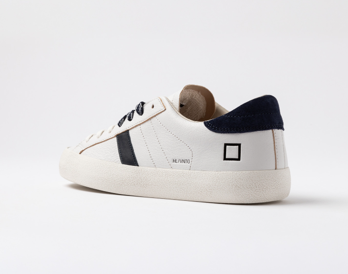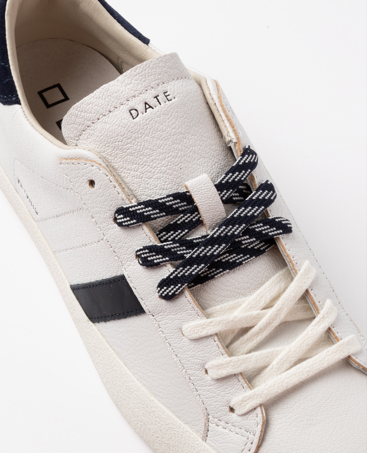 DATE Sneakers bassa bianco blu Sneakers bassa in pelle martellata colore bianco. Dettagli & Vestibilità Linguetta in pelle in tono su cui è impressa la scritta D.A.T.E. Lacci in cotone e poliestere, in due diverse colazioni. Il logo quadrato e il nome del modello sono impressi lateralmente. Banda laterale in pelle colore blu scuro. Talloncino posteriore in suede colore blu scuro. Fodera in pelle e spugna di cotone. Soletta interna rialzata di 2 cm per un miglior comfort. La suola in gomma con texture cemento, è alta 3 cm. Tutti i materiali selezionati sono Made in Italy. Vestibilità: REGULAR Codice: M441-HL-NT-WL Istruzioni per la cura Raccomandiamo di seguire alcune istruzioni per preservare queste sneakers: Evitare il contatto con acqua, sostanze contenenti alcol e in generale qualsiasi prodotto abrasivo. In caso di contatto con l’acqua, è fondamentale lasciare che le sneakers si asciughino completamente prima di procedere alla pulizia. Pulire la pelle liscia o martellata con un panno morbido e umido. Quando la pelle sarà completamente asciutta, applicare della crema neutra e del lucido di buona qualità con un panno morbido, eseguendo piccoli movimenti circolari. Per pulire le parti in suede utilizzare una spazzola asciutta a setole morbide e spazzolare con attenzione le singole parti in suede.