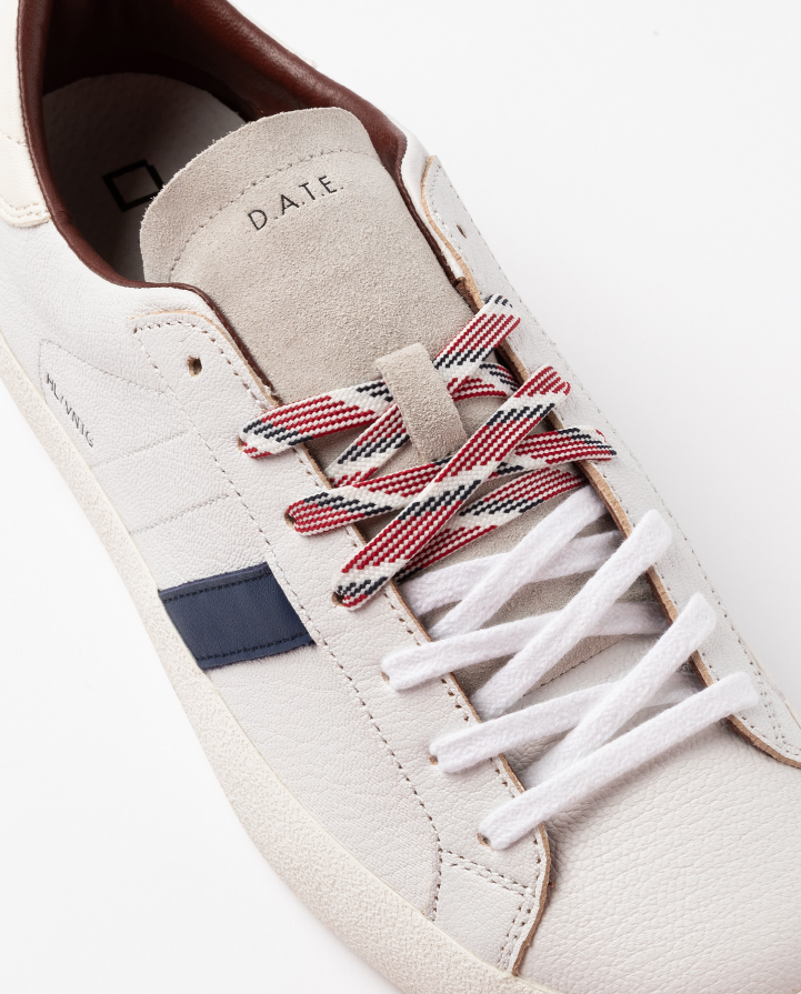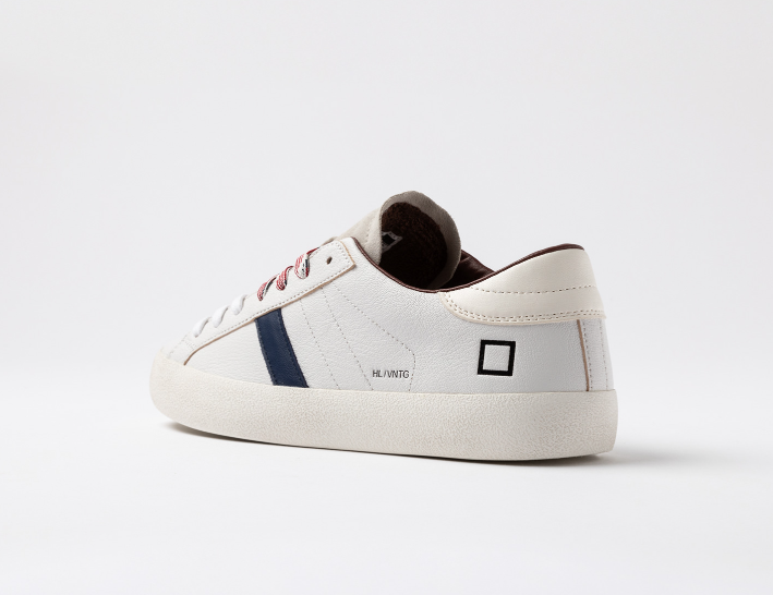 DATE Sneakers bassa bianco moro Sneakers bassa in pelle martellata colore bianco. Dettagli & Vestibilità Linguetta in suede avorio su cui è impressa la scritta D.A.T.E. Lacci in cotone e poliestere, in due diverse colazioni. Il logo quadrato e il nome del modello sono impressi lateralmente. Banda laterale in pelle colore blu. Talloncino posteriore in pelle colore bianco panna. Fodera in pelle e spugna di cotone. Soletta interna rialzata di 2 cm per un miglior comfort. La suola in gomma con texture cemento, è alta 3 cm. Tutti i materiali selezionati sono Made in Italy. Vestibilità: REGULAR Codice: M441-HL-NT-WN Istruzioni per la cura Raccomandiamo di seguire alcune istruzioni per preservare queste sneakers: Evitare il contatto con acqua, sostanze contenenti alcol e in generale qualsiasi prodotto abrasivo. In caso di contatto con l’acqua, è fondamentale lasciare che le sneakers si asciughino completamente prima di procedere alla pulizia. Pulire la pelle liscia o martellata con un panno morbido e umido. Quando la pelle sarà completamente asciutta, applicare della crema neutra e del lucido di buona qualità con un panno morbido, eseguendo piccoli movimenti circolari. Per pulire le parti in suede utilizzare una spazzola asciutta a setole morbide e spazzolare con attenzione le singole parti in suede.