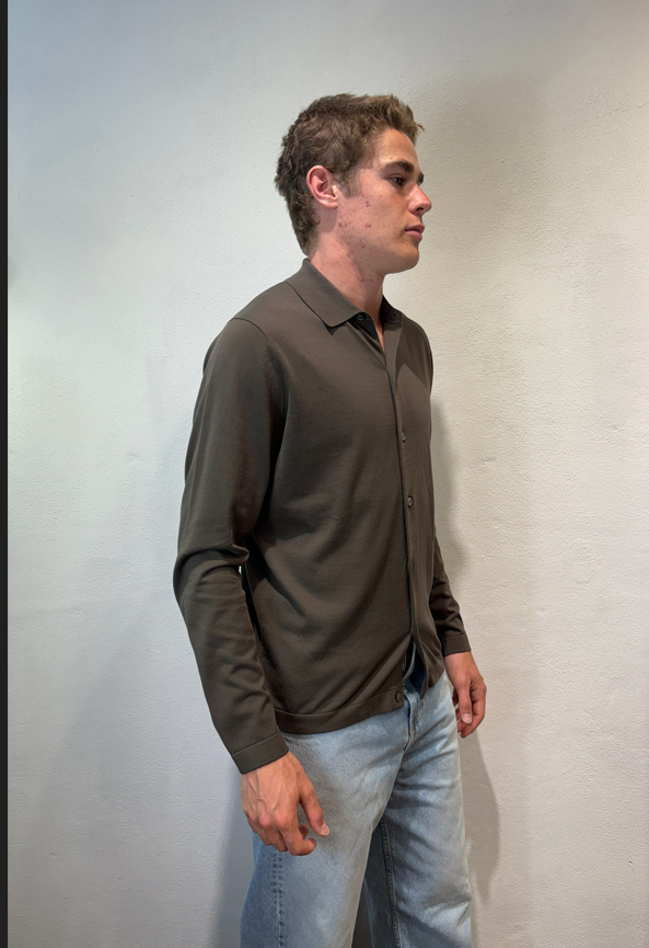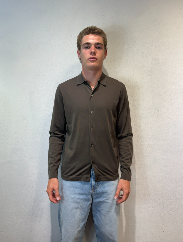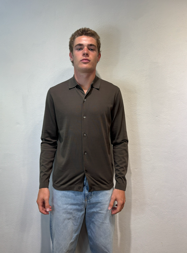 Diktat camicia in filo di cotone moro Camicia di cotone in filo finezza 18 Il modello veste una taglia M /48 Altezza Modello 1,85 peso 72 kg Vestibilità regolare