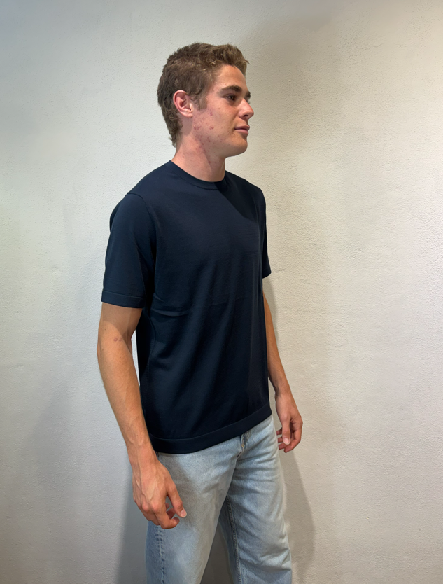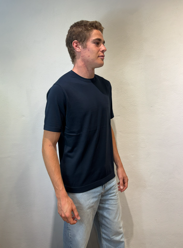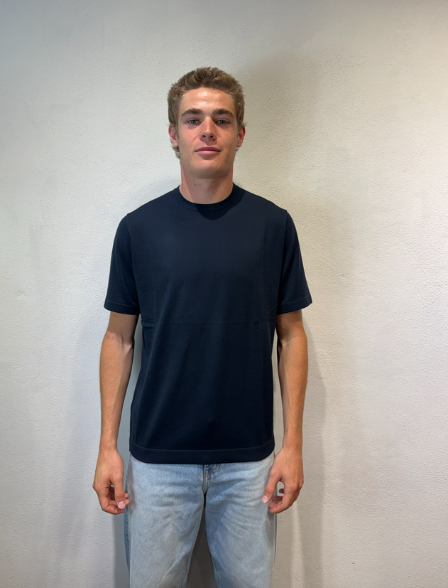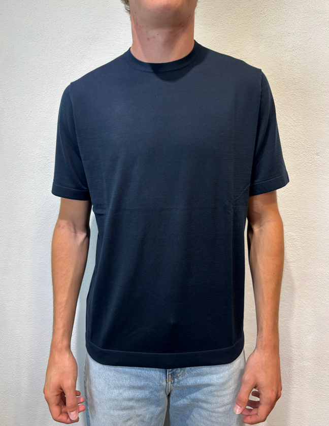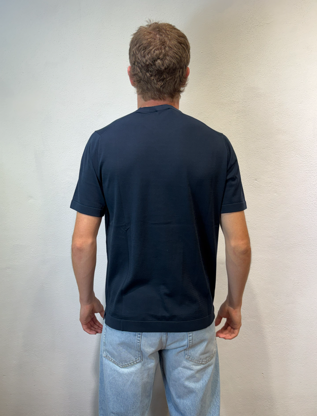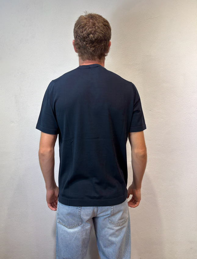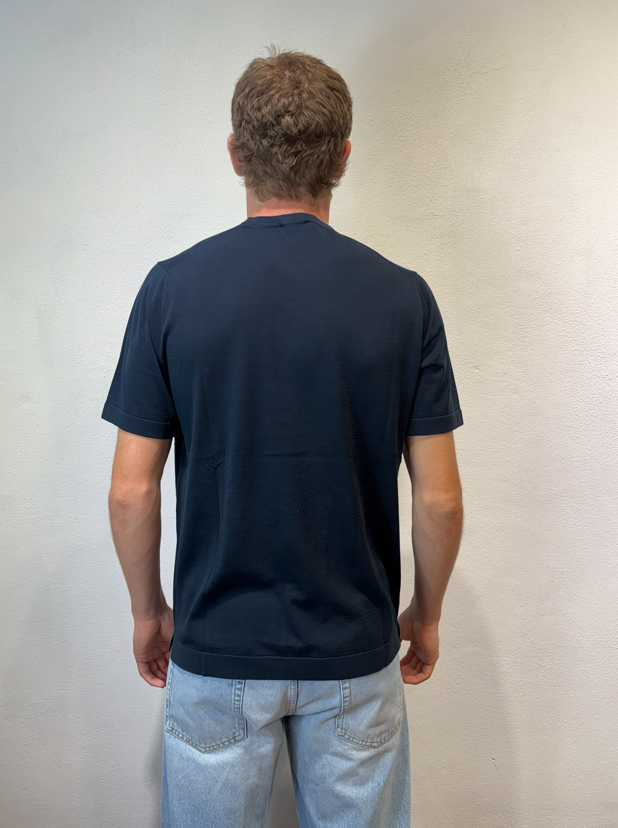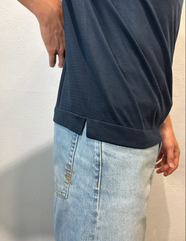 Diktat t-shirt mezza manica in filo di cotone blu 100% cotone Made in Italy Il modello veste una taglia M /48 Altezza Modello 1,85 peso 72 kg