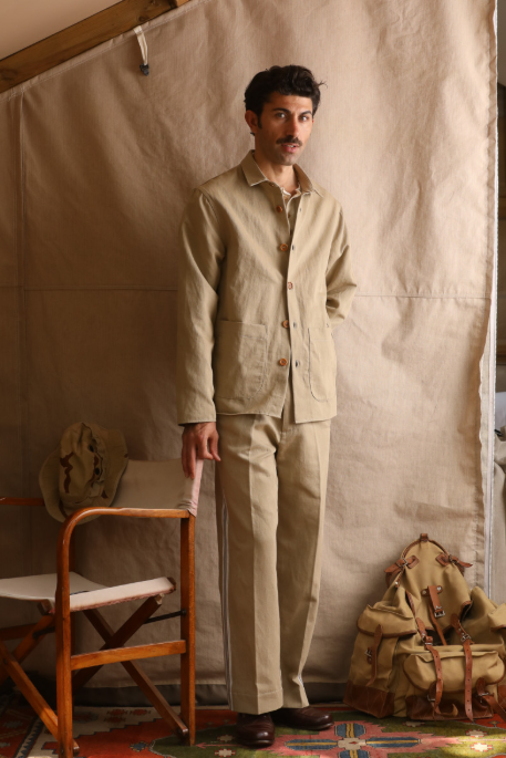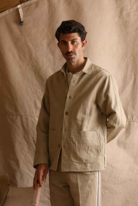 East Harbour Surplus Overshirt cotone lino beige Giacca da lavoro Twill lavato 81% cotone 19% lino Prodotto in Italia