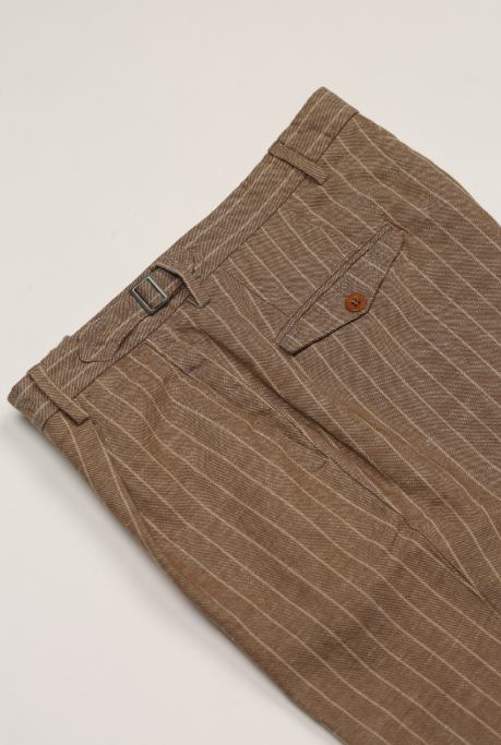 East Harbour Surplus pantalone misto lino gessato beige pantaloni con una piega, giacca dispoinibile per completo ( GIACCA DOVER ) Vestibilità regolare Larghezza orlo 21 cm 56% cotone 44% lino Prodotto in Italia MISURARE 44=S30/31 46=W32/33 48=W34 50=W36 52=W38 54=W39/40 56=W41