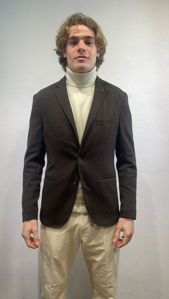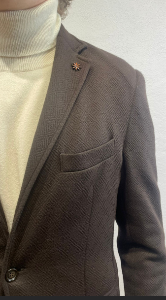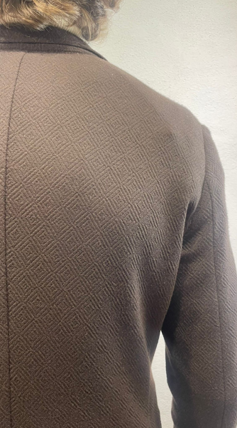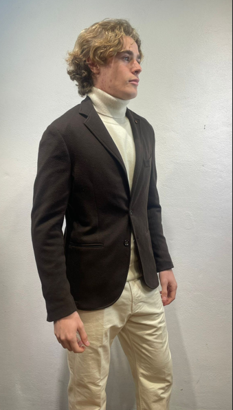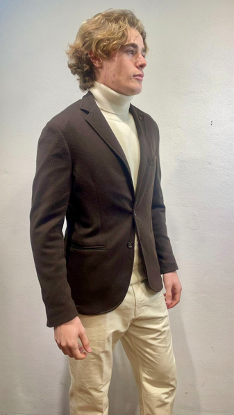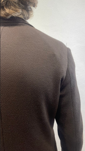 En Avance giacca in jersey lavorato moro Giacca monopetto in effetto jersey di cotone Made in Italy Composizione 37% cotone 60% poliestere 3% elastan ET31A 5012 MORO GIACCA JACQUARD MORO Il modello veste una taglia 48 / M Alezza modello 1,85 peso 72 kg