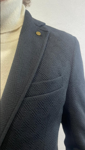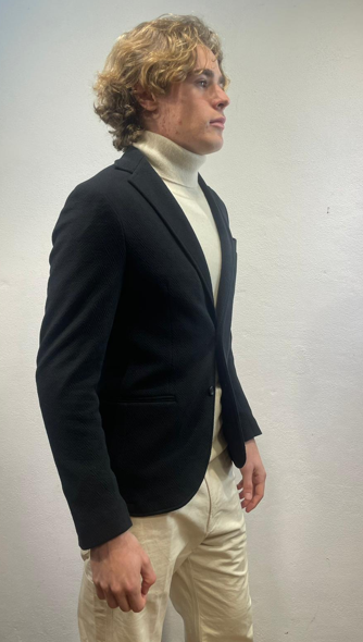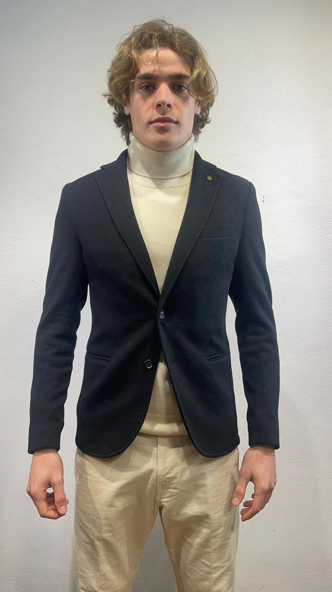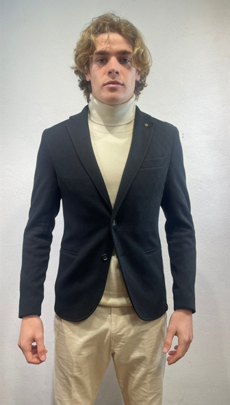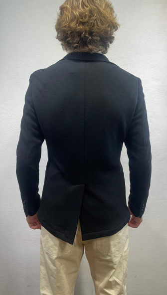 En Avance giacca in jersey lavorato nero Giacca monopetto in effetto jersey di cotone Made in Italy Composizione 37% cotone 60% poliestere 3% elastan ET31A 5012 NERO GIACCA JACQUARD NERO Il modello veste una taglia 48 / M Alezza modello 1,85 peso 72 kg