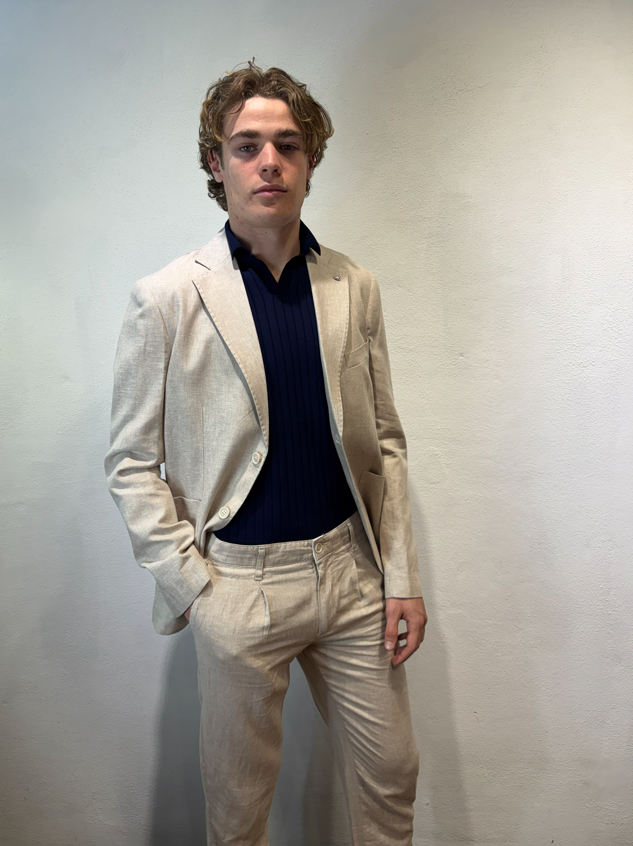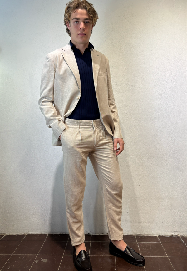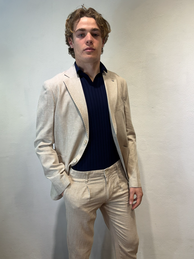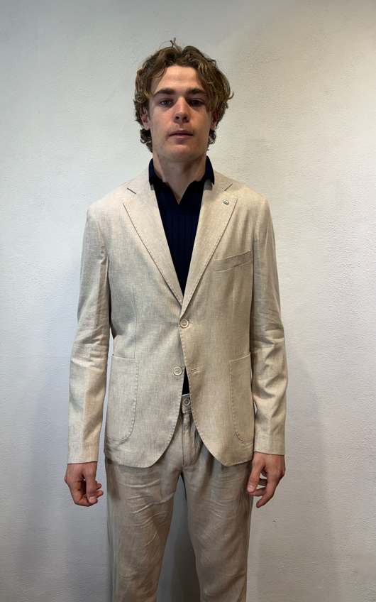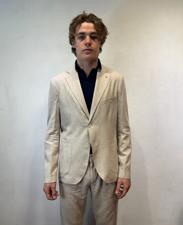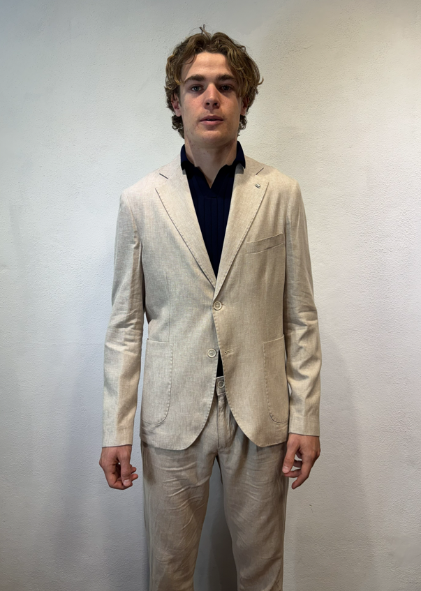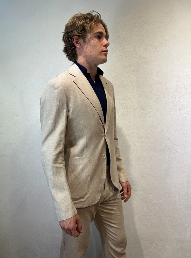 En Avance giacca in misto lino sabbia Giacca monopetto con tasca a toppa in misto lino Composizione 55% lino 45% viascosa Il modello veste una taglia M /48 Altezza Modello 1,85 peso 72 kg Vestibilità regolare