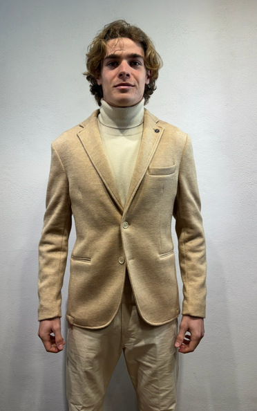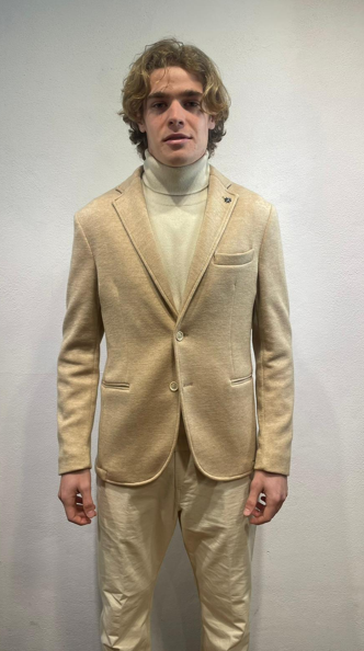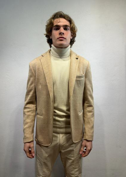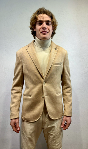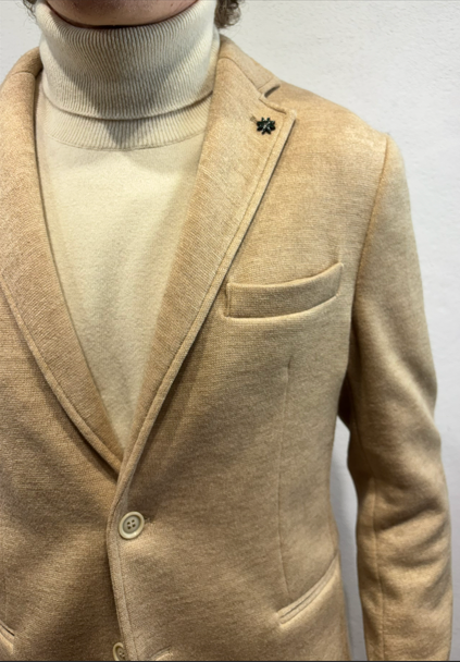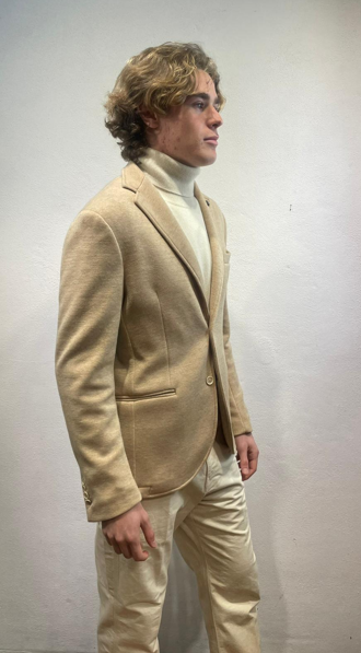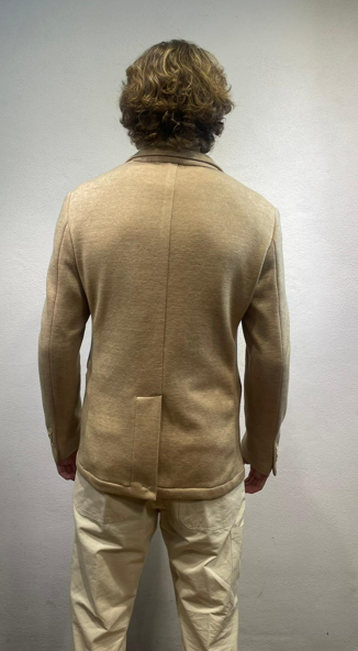 En Avance giacca in jersey Sabbia Giacca monopetto in effetto punto milano di cotone Made in Italy Composizione 40% cotone 60% poliestere DX1A 5012 CAMEL GIACCA P.MILANO SABBIA Il modello veste una taglia 48 / M Alezza modello 1,85 peso 72 kg