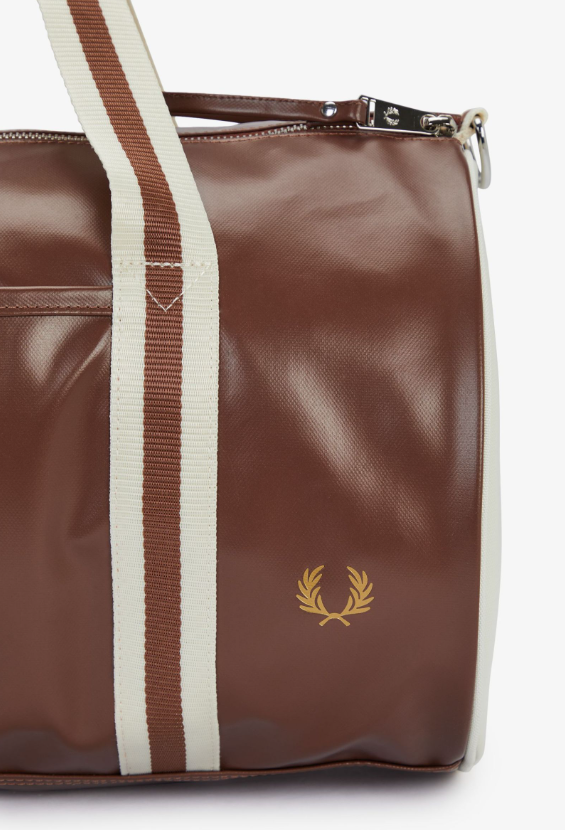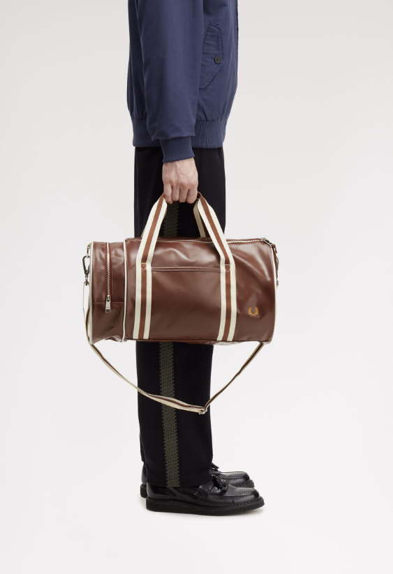Fred Perry Borsa Da Palestra Classica cuoio Accessorio sportivo irrinunciabile, ricco di caratteristiche funzionali, la nostra iconica borsa da palestra è pensata per distinguersi con stile. Modello Fred Perry immediatamente riconoscibile per i manici con doppia riga e l’inconfondibile estremità con logo, questa borsa è amata da molti e rappresenta una forte dichiarazione subculturale nei soundcheck, ai festival e nella scena underground. Robusto PU riciclato con rivestimento in TPU / Dettagli in metallo argentato / Doppia riga su manici e tracolla / Logo sull’estremità della borsa / Corona d’alloro incisa sul davanti Ulteriori Informazioni Modello che richiama allo stesso tempo gli allenamenti in palestra, le prove delle band e le gite fuori città, la nostra classica borsa da palestra è realizzata in un materiale completamente riciclato con rivestimento in TPU. Le colorazioni sempre nuove mantengono questo accessorio fresco e attuale, mentre gli scomparti con doppia zip e le tasche laterali ti assicurano ampio spazio. Inconfondibilmente Fred Perry, indiscutibilmente affidabile. 46 X 26 X 26 CM – 23 Litres 100% Poliestere Riciclato Non Lavabile – Pulire con un panno umido Modello L7255 Colore Color cuoio / Écru