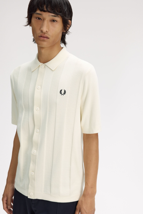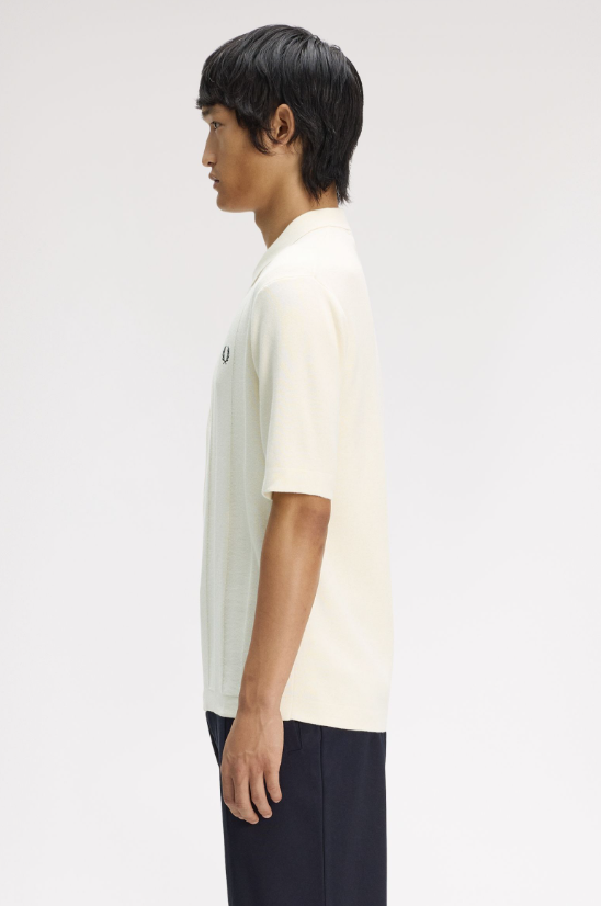 Fred Perry Polo A Righe Verticali Tono Su Tono ecru Una polo in maglia con bottoni su tutta la lunghezza in morbidissimo cotone pettinato. Presenta righe sportive textured lungo il busto. Maglia di cotone pettinato / Vestibilità regular / Modello con bottoni in finto corno su tutta la lunghezza / Righe verticali con texture a contrasto / Orlo e bordo manica tubulari definiti Colore Ecru Ulteriori Informazioni Come la polo Fred Perry classica, la versione in maglia è traspirante e comoda, ideale per lo sport ma abbastanza raffinata da poter essere indossata fuori dal campo. Proprio questa versatilità l’ha resa un must-have per tantissime subculture nel corso degli anni. Con bottoni frontali su tutta la lunghezza e righe textured a contrasto, questa versione è un chiaro omaggio alle tradizionali magliette sportive. 100% Cotone Lavare In Lavatrice Altezza modello/a: 6’1′ / 185cm Il/La modello/a indossa: M Modello K2324 Colore Ecru