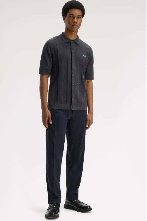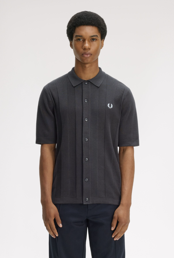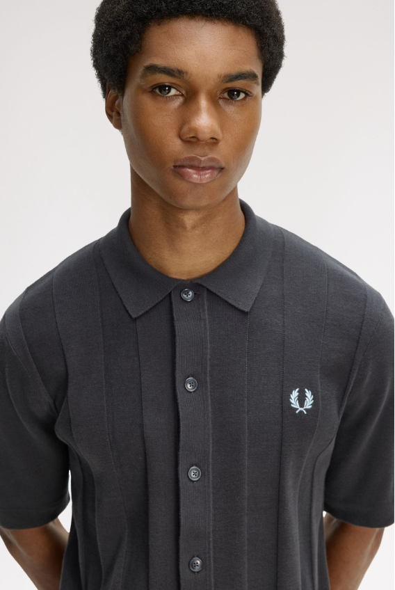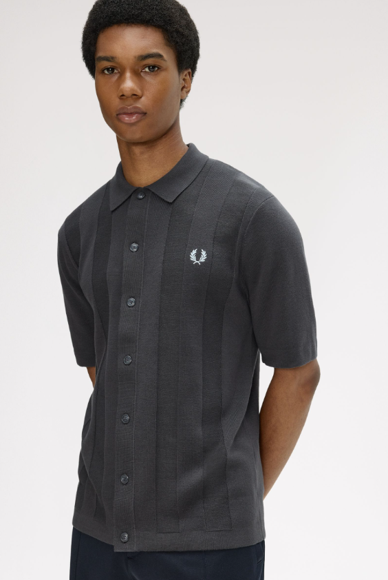 Fred Perry Polo A Righe Verticali Tono Su Tono grigio Una polo in maglia con bottoni su tutta la lunghezza in morbidissimo cotone pettinato. Presenta righe sportive textured lungo il busto. Maglia di cotone pettinato / Vestibilità regular / Modello con bottoni in finto corno su tutta la lunghezza / Righe verticali con texture a contrasto / Orlo e bordo manica tubulari definiti Colore Grigio Ulteriori Informazioni Come la polo Fred Perry classica, la versione in maglia è traspirante e comoda, ideale per lo sport ma abbastanza raffinata da poter essere indossata fuori dal campo. Proprio questa versatilità l’ha resa un must-have per tantissime subculture nel corso degli anni. Con bottoni frontali su tutta la lunghezza e righe textured a contrasto, questa versione è un chiaro omaggio alle tradizionali magliette sportive. 100% Cotone Lavare In Lavatrice Altezza modello/a: 6’0′ / 183cm Il/La modello/a indossa: M Modello K2324 Colore Grigio