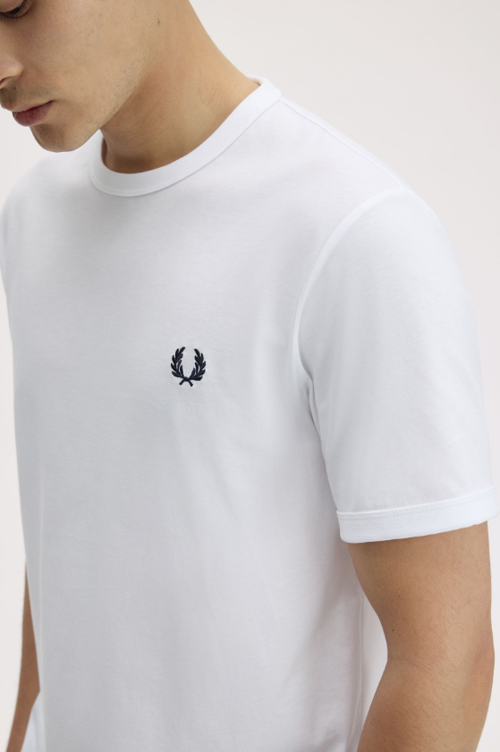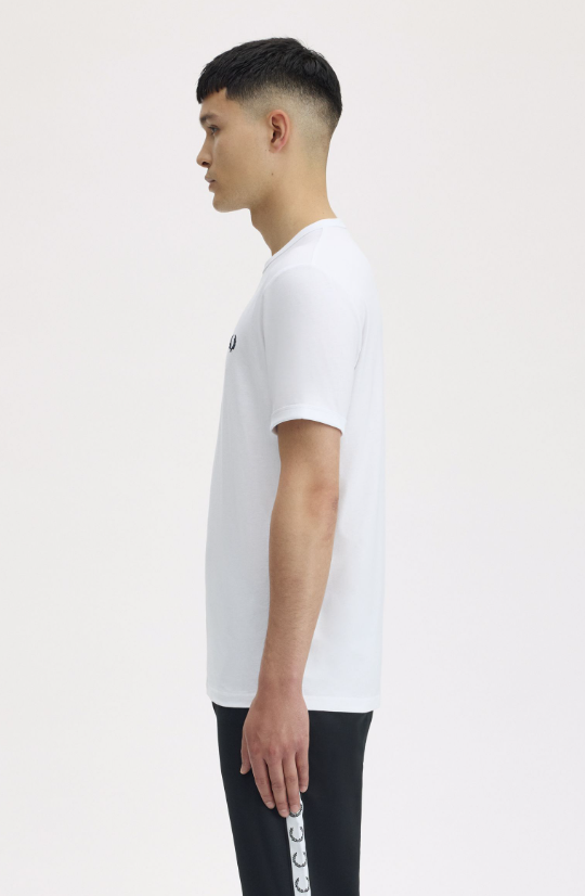 Fred Perry t-shirt basic bianco La T-shirt Ringer è un capo sportivo immediatamente riconoscibile. Realizzata in jersey di cotone e rifinita da colletto e bordo manica a coste. Jersey di cotone / Vestibilità regular / Colletto e polsini a coste Ulteriori Informazioni Indossata in origine come capo da allenamento sportivo, la T-shirt Ringer divenne successivamente parte dell’uniforme subculturale. Dagli anni ’70 in poi, è realizzata in audaci colori a contrasto e con stampe grafiche. La nostra è nei tipici colori Fred Perry. 100% Cotone Lavare In Lavatrice Altezza modello/a: 6’1.5′ / 187cm Il/La modello/a indossa: M Modello M3519 Colore Bianco
