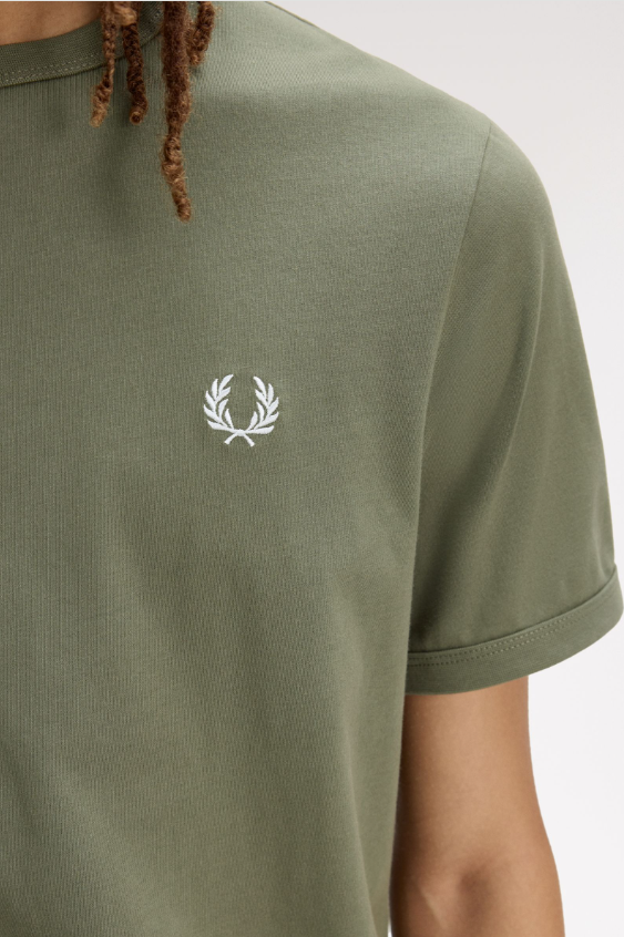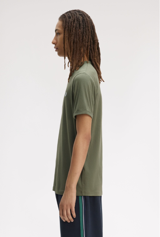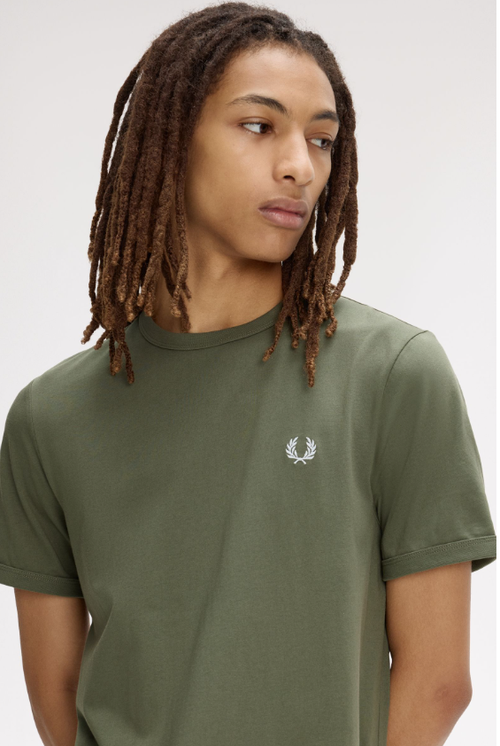 Fred Perry T-shirt basic verde La T-shirt Ringer è un capo sportivo immediatamente riconoscibile. Realizzata in jersey di cotone e rifinita da colletto e bordo manica a coste. Jersey di cotone / Vestibilità regular / Colletto e polsini a coste Colore Verde Ulteriori Informazioni Indossata in origine come capo da allenamento sportivo, la T-shirt Ringer divenne successivamente parte dell’uniforme subculturale. Dagli anni ’70 in poi, è realizzata in audaci colori a contrasto e con stampe grafiche. La nostra è nei tipici colori Fred Perry. 100% Cotone Lavare In Lavatrice Altezza modello/a: 6’1.5′ / 187cm Il/La modello/a indossa: M Modello M3519 Colore Verde