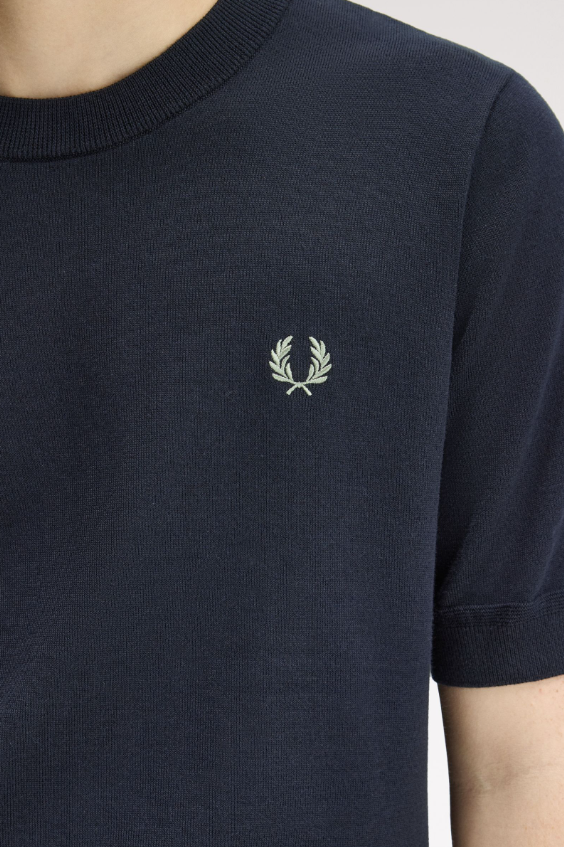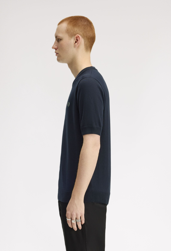 Fred perry T-shirt in maglia di cotone blu Una T-shirt girocollo in cotone a fibra extra lunga, per una sensazione al tatto eccezionale e una finitura magnifica. Un capo irrinunciabile, con una marcia in più. Cotone a fibra lunga / Vestibilità regular / Girocollo / Orlo, colletto e bordo manica a coste / Corona d’alloro ricamata sul petto Colore blu Ulteriori Informazioni Notevolmente più morbido, resistente e con una finitura più brillante rispetto ad altri tessuti, il cotone utilizzato per realizzare questa T-shirt in maglia dona a una silhouette semplice un grande tocco di eleganza. 100% Cotone Lavare In Lavatrice Altezza modello/a: 6’0′ / 183cm Il/La modello/a indossa: M Modello K2322 Colore Blu navy