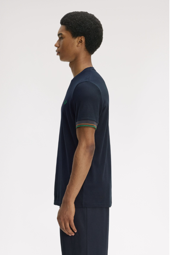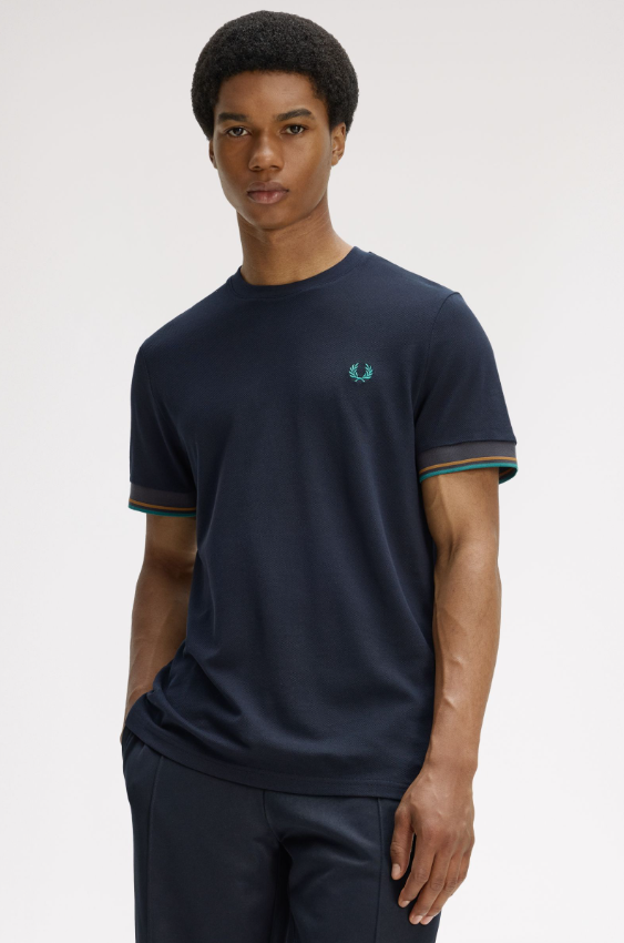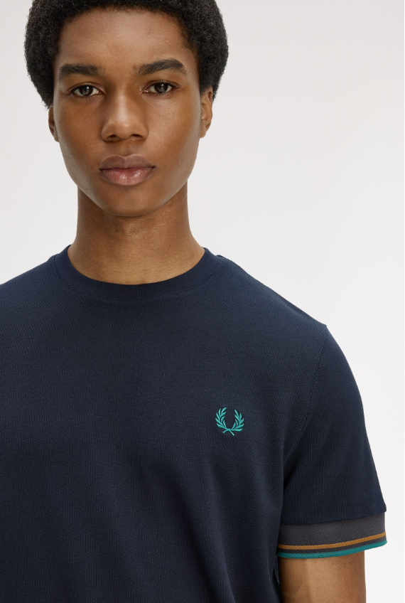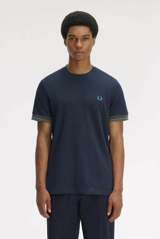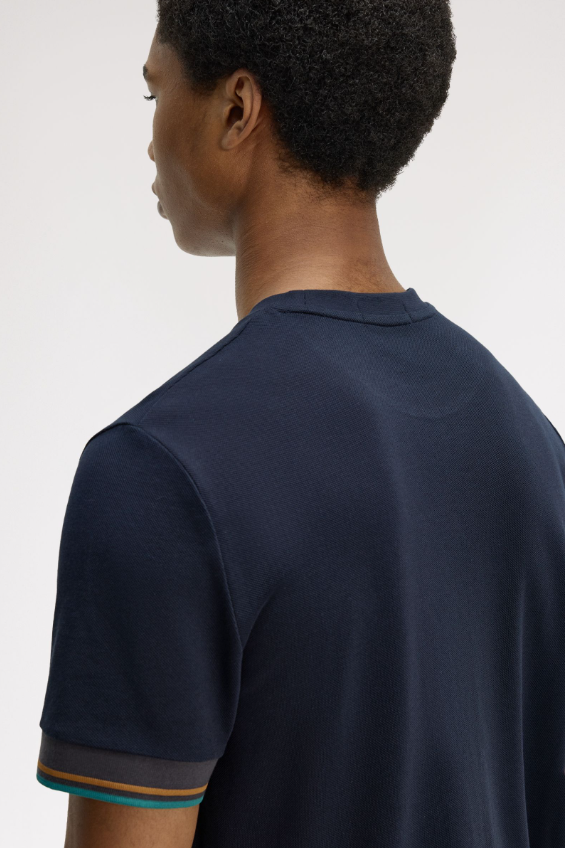 Fred Perry T-Shirt Con Doppia Riga Sul Bordo Manica blu Realizzata nel nostro classico piqué di cotone traspirante, questa T-shirt leggera presenta una vistosa doppia riga sul bordo manica. Piqué di cotone leggero / Vestibilità regular / Bordo manica con doppia riga a contrasto / Bordo del colletto in maglia rasata Colore Blu Navy Ulteriori Informazioni Una T-shirt di ispirazione sportiva dall’estetica raffinata. Vogliamo celebrare il DNA unico ed esclusivo dello stile Fred Perry e tutti coloro che amano indossarlo. Realizzata in una versione più leggera del nostro esclusivo piqué di cotone, questa T-shirt traspirante offre la massima freschezza, dal campo da tennis alle serate in discoteca. Come sempre, restiamo fedeli ai nostri dettagli più inconfondibili: la doppia riga sul bordo manica e la corona d’alloro in colore abbinato. 100% Cotone Lavare In Lavatrice Altezza modello/a: 6’0′ / 183cm Il/La modello/a indossa: M Modello M2396 Colore Blu Navy