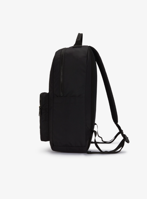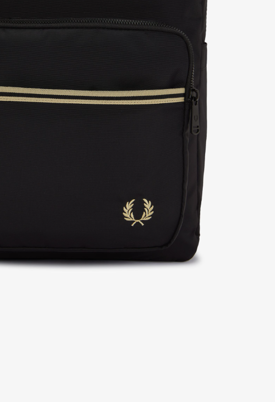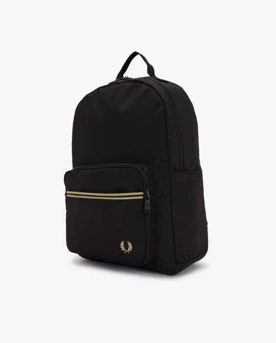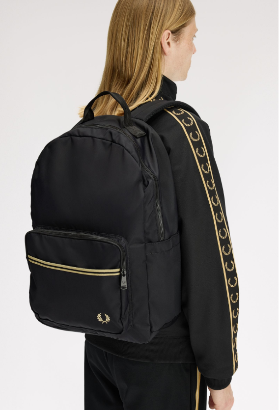 Fred Perry Zaino con fettuccia con riga nero Realizzato in nylon riciclato e rifinito con fettuccia con doppia riga nel nostro esclusivo rapporto 5-4-4, è un accessorio pratico ricco di dettagli funzionali e discreti. Tasca frontale nascosta, scomparto interno imbottito per laptop, gancio a moschettone girevole per le chiavi: soluzioni semplici per tutti i giorni in uno stile inconfondibilmente Fred Perry. Rivestimento in nylon riciclato / Scomparto frontale / Manico superiore / Doppia riga sul davanti / Scomparto imbottito per laptop Colore Nero Ulteriori Informazioni Un accessorio funzionale, completo di discreti dettagli Fred Perry. Il nostro zaino in nylon interamente riciclato è dotato di doppia apertura con zip, tasche laterali per un facile accesso alla borraccia e una tasca imbottita per i tuoi dispositivi. I dettagli sobri conferiscono un tocco maturo e ricercato, con spallacci imbottiti per un maggiore comfort, doppia riga sulla tasca anteriore e la corona d’alloro ricamata che ricorda con discrezione la nostra tradizione sportiva. 46 X 31 X 14 CM 100% Polyamide Riciclato Non Lavabile – Pulire con un panno umido Modello L2807 Colore Nero