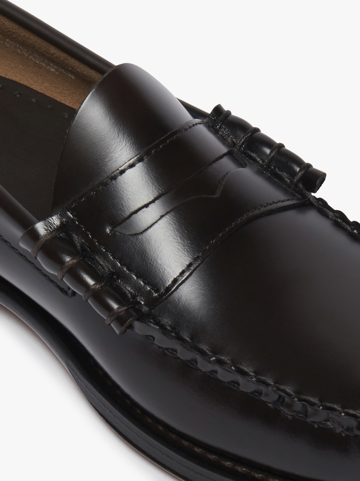 Gh Bass mocassino penny loafers moro Codice prodotto – BA11010H OCH Mocassini originali in pelle nera lucida Mocassini facili da indossare Cuciti a mano con filo tono su tono Soletta interna in pelle con imbottitura Interno traspirante e sfoderato Sottopiede con stampa a caldo dorata Cuciture della suola rinforzate Cuciture a guardolo Tacco in gomma resistente Intersuola in gomma per un passo ammortizzato Suola in pelle lucida Prodotto in El Salvador