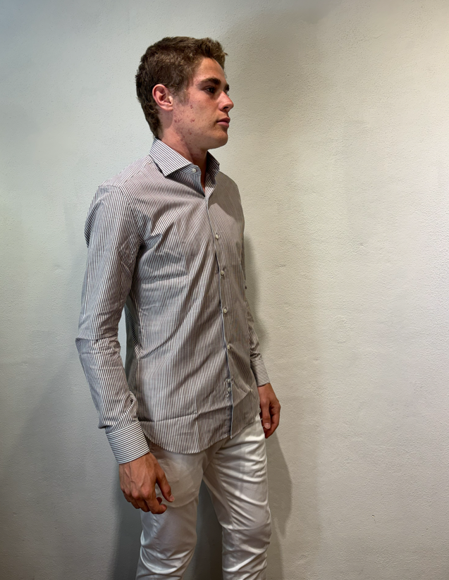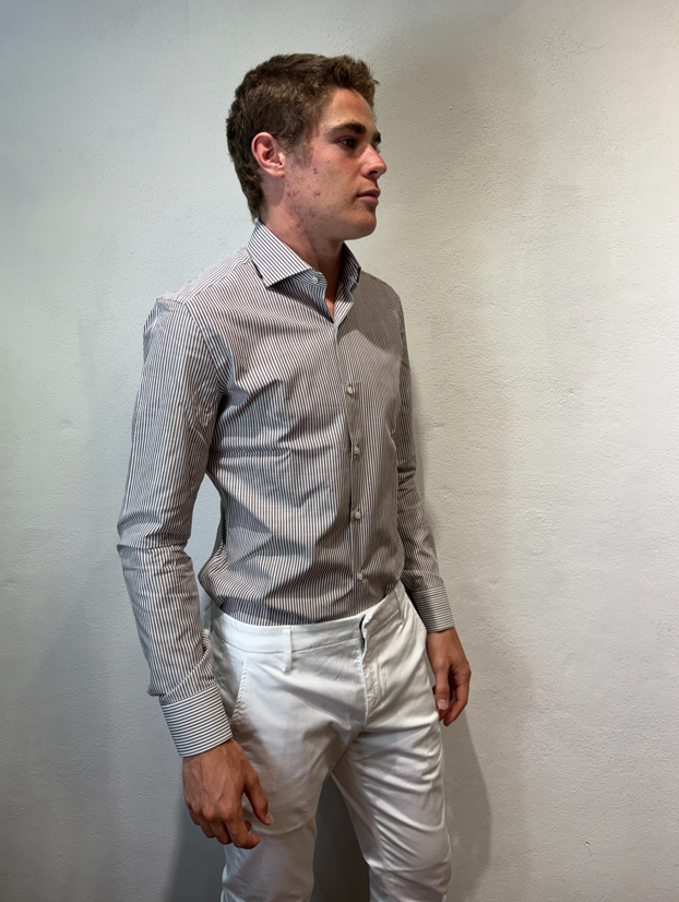 Ghr camicia in cotone bastoncino moro bianco