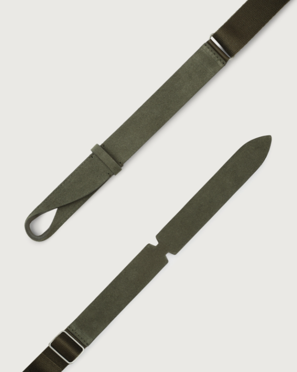 Orciani Cintura Nobuckle Suede in camoscio e tessuto verde militare