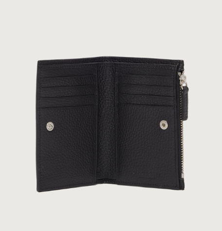 Orciani Portafoglio portacarte Soft con zip in pelle nero SU0129–_SOF-SOF20W BLK Dimensioni: Larghezza: 11,5 cm / Altezza: 9,5 cm Tasche: scomparto per banconote, otto scomparti per carte, portamonete con zip Funzionalità: protezione RFID anti-clonazione Dettagli: metallerie finitura canna di fucile opaco Materiale: pelle martellata Made in Italy