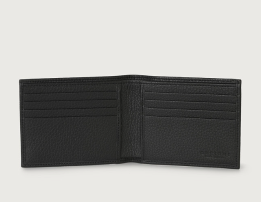 Orciani Portafoglio Micron in pelle Nero Dimensioni: Larghezza: 11,5 cm / Altezza: 9 cm Tasche: scomparto per banconote, otto scomparti porta carte Funzionalità: protezione RFID anti-clonazione Dettagli: metallerie finitura palladio Materiale: pelle martellata Made in Italy