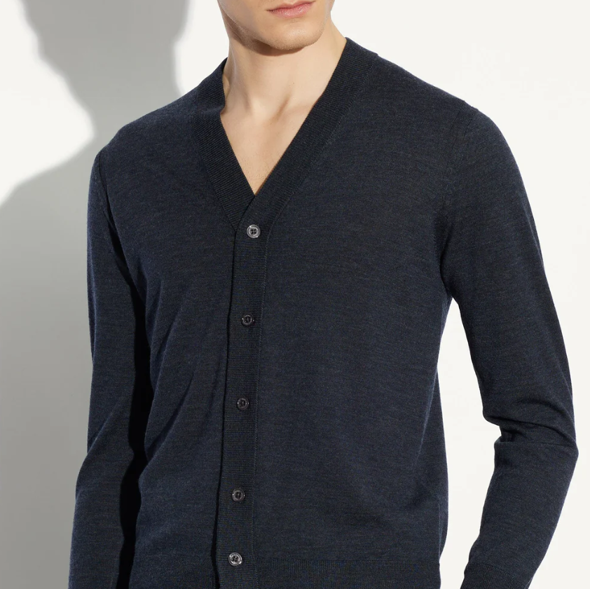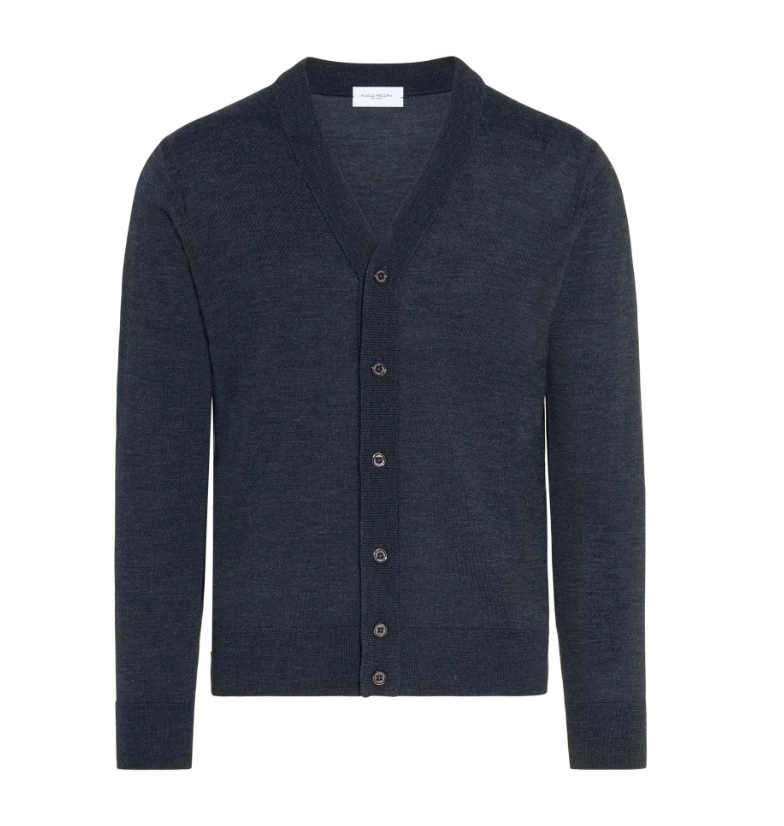 Paolo Pecora Milano cardigan in lana f. 16 antracite A005 F001 8928 CARDIGAN ANTRACITE Il cardigan da uomo in antracite melange firmato Paolo Pecora Milano è un capo essenziale per la stagione Autunno Inverno. Realizzato in filato di alta qualità, unisce comfort e raffinatezza in un design dal gusto minimale. Il taglio classico con scollo a V, chiusura a bottoni e finiture a costine lo rende perfetto da indossare sia sopra una camicia per uno stile più formale, sia con una t-shirt per un look casual e rilassato. Un capo versatile e sofisticato, pensato per l’uomo che ricerca eleganza quotidiana e qualità sartoriale Caratteristiche Tessuto Principale: 100%WV Cura e Manutenzione Lavare a mano a 30 °C o a secco (programma delicati) Non candeggiare Non usare l’asciugatrice Stirare a ferro tiepido