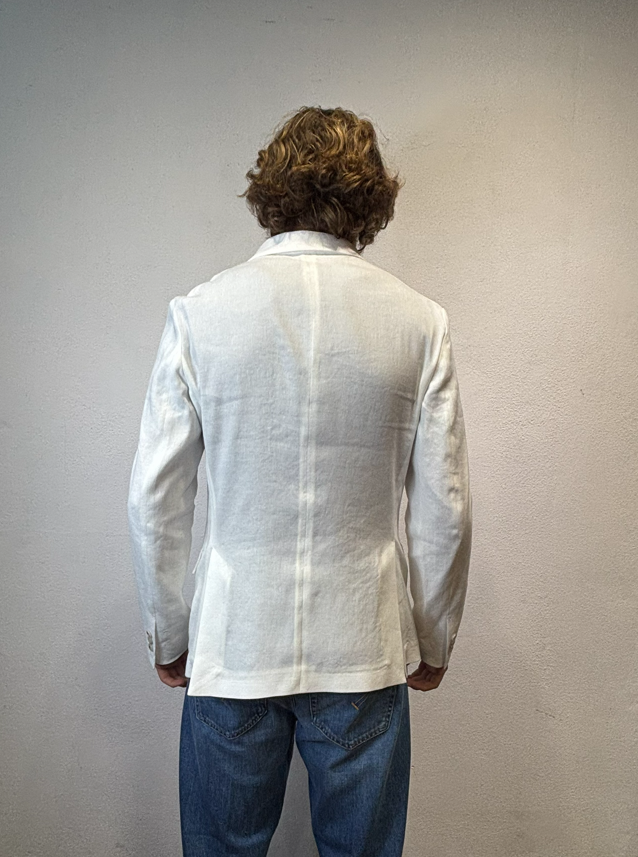 Paolo Pecora giacca doppio petto cotone lino panna