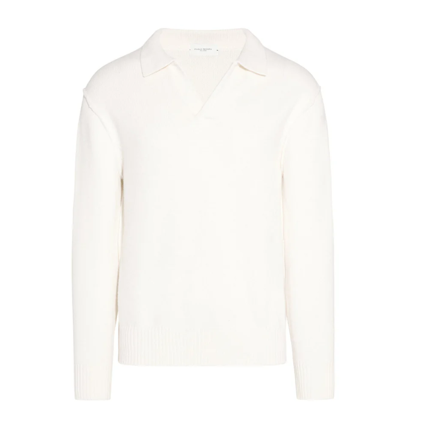 Paolo Pecora Milano Maglia a polo scollo v in lana Maglia polo da uomo color panna della collezione Autunno Inverno 2025 di Paolo Pecora Milano. Caratterizzata da un raffinato colletto aperto e realizzata in filato compatto e caldo, questa polo unisce eleganza e comfort in una silhouette essenziale. Il design minimal, privo di bottoni, valorizza il taglio pulito e la versatilità del capo, perfetto da indossare sotto una giacca o come protagonista di un look più casual. Il colore chiaro aggiunge un tocco luminoso alla stagione invernale. Caratteristiche Tessuto Principale: 100%WV Cura e Manutenzione Lavare a mano a 30 °C o a secco (programma delicati) Non candeggiare Non usare l’asciugatrice Stirare a ferro tiepido