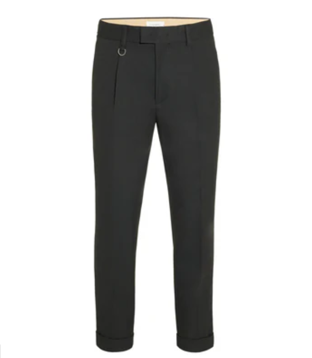 Paolo Pecora Milano Chino Sartoriale in Gabardina Smerigliata Nero Pantalone da uomo realizzato in tessuto marrone liscio, dal taglio sartoriale e contemporaneo. Caratterizzato da pince frontali, risvolto al fondo e anello in metallo decorativo sul passante, offre un’eleganza disinvolta e un fit raffinato. Perfetto per creare look versatili da ufficio o per il tempo libero con un tocco distintivo. Parte della collezione Autunno Inverno 2025 di Paolo Pecora Milano, un capo pensato per chi ama vestire con stile, senza rinunciare al comfort. Caratteristiche Tessuto Principale: 64%LY 34%CO 2%EA
