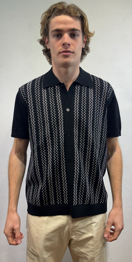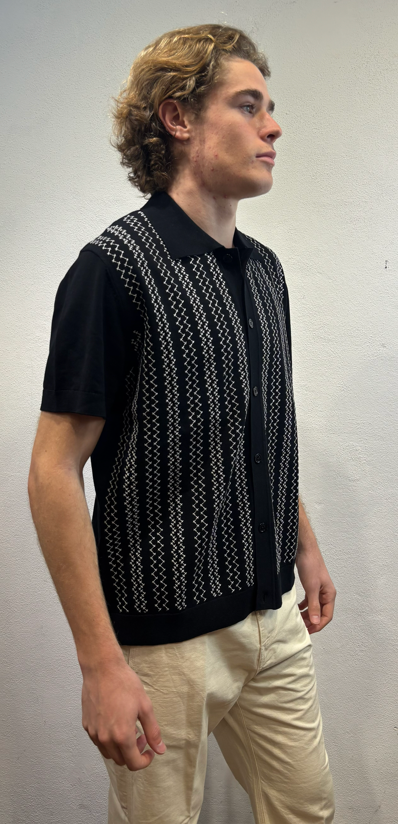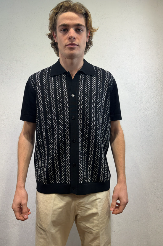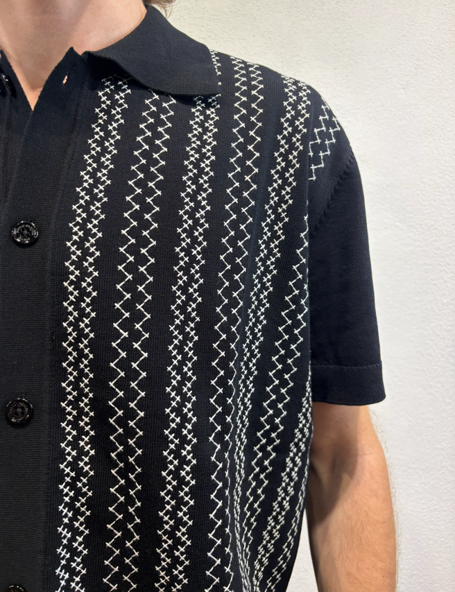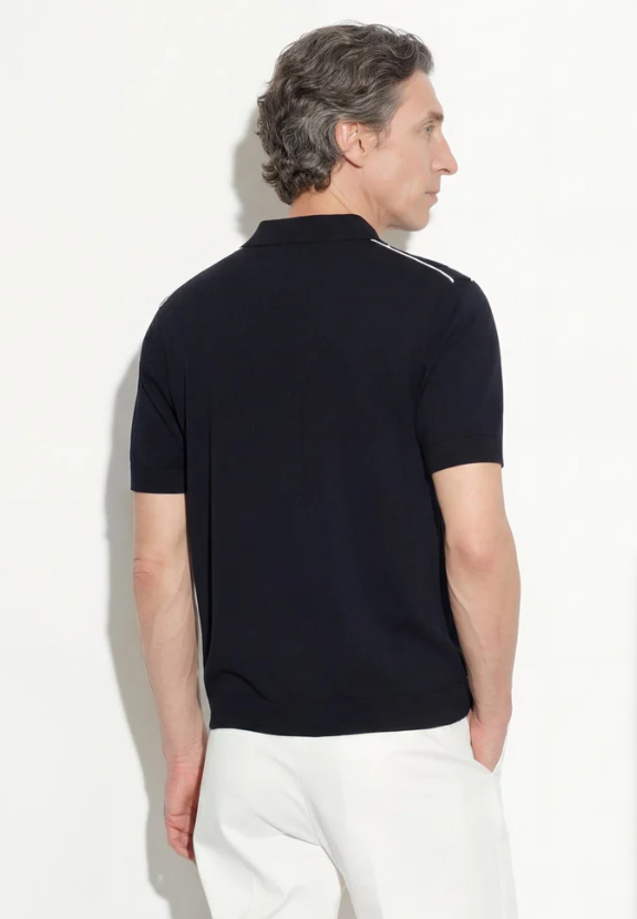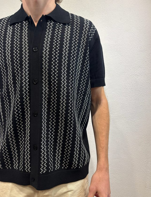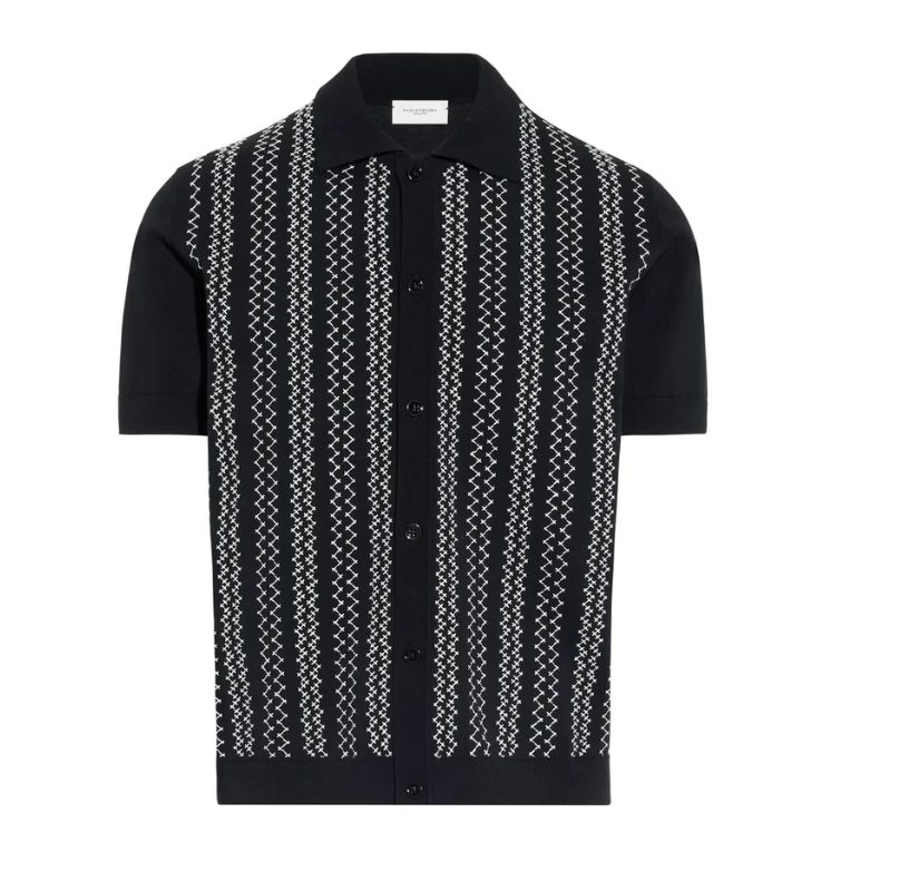Paolo Pecora polo camicia ricamata colore nero Camicia a maniche corte in maglia di cotone rasata, caratterizzata da un ricamo grafico verticale che definisce il capo con un segno distintivo e contemporaneo. La vestibilità loose contribuisce a un’attitudine rilassata ma curata, rendendola ideale per uno stile estivo essenziale e sofisticato. Caratteristiche • Designed and styled in Italy • Vestibilità Loose • Tessuto principale: 100%CO • Bottoni: 100%MP • Ricamo grafico verticale • Maglia rasata • Chiusura frontale con bottoni • Gauge 14 Vestibilità Questo capo presenta una vestibilità loose, con volumi più morbidi e una silhouette rilassata. Scegli la tua taglia abituale per mantenere l’effetto loose, oppure una taglia in meno per una vestibilità più asciutta. Cura e Manutenzione Lavare a mano a 30 °C o a secco (programma delicati) Non candeggiare Non usare l’asciugatrice Stirare a ferro tiepido Vestibilità Loose Il modello veste una taglia M /48 Altezza modello 1,85 peso 72 kg