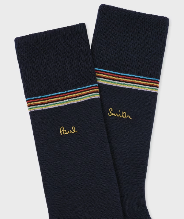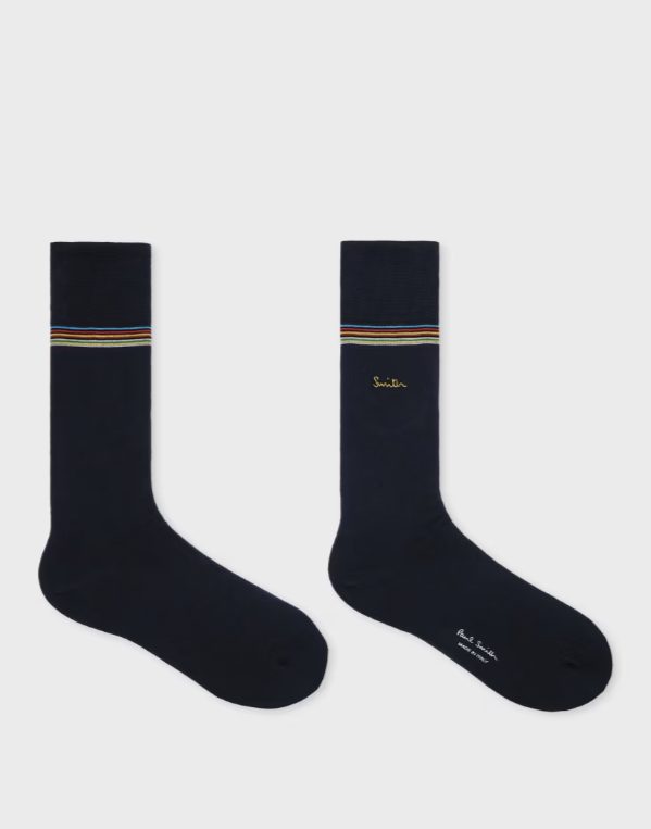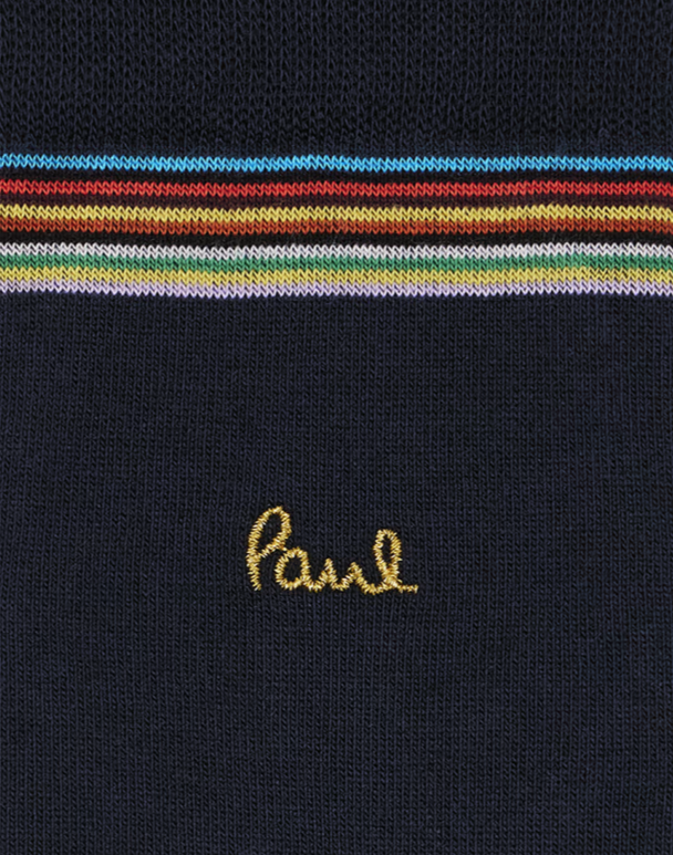 Paul Smith calza con Rifiniture a righe con logo ricamato in oro blu navy in misto cotone Realizzati in morbido misto cotone biologico, questi calzini blu navy presentano il logo Paul Smith ricamato in oro e un caratteristico bordo a righe. Aggiungendo un tocco di lusso ai capi essenziali di tutti i giorni, questi calzini uniscono comfort e stile esclusivo. Materiale 85% cotone, 14% poliammide, 1% elastan Prodotto in Italia Codice prodotto M1A-380CI-T639-47 Informazioni sulla cura Lavabile in lavatrice Sostenibilità Almeno il 50% dei materiali utilizzati per realizzare questo prodotto ha un impatto ambientale ridotto. Se trovate il nostro logo Sun nei nostri negozi o online, significa che questo prodotto è stato realizzato con materiali a basso impatto ambientale.