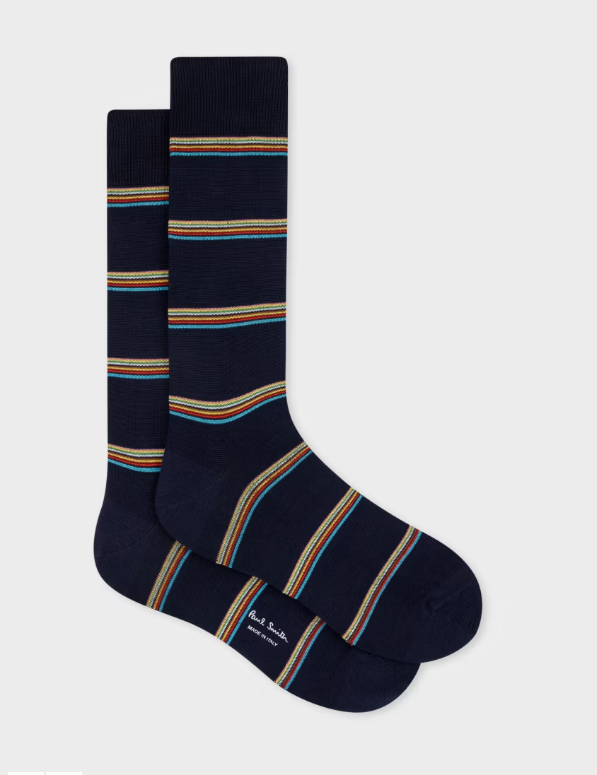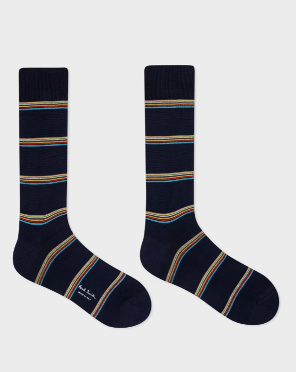 Paul Smith Calzini ‘Signature Stripe’ con stampa a blocchi blu navy Realizzati in morbido misto cotone, questi calzini blu navy sono caratterizzati da un motivo a blocchi ‘Signature Stripe’. Prodotto in Italia Codice prodotto M1A-800MO-M401-47 Sostenibilità Almeno il 50% dei materiali utilizzati per realizzare questo prodotto ha un impatto ambientale ridotto. Se trovate il nostro logo Sun nei nostri negozi o online, significa che questo prodotto è stato realizzato con materiali a basso impatto ambientale. Si prega di notare che questo prodotto è escluso dalle promozioni.