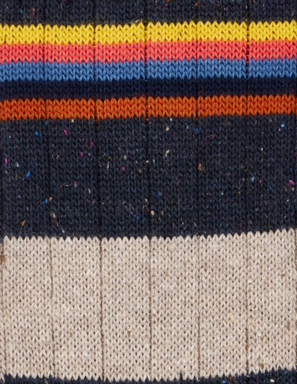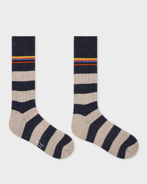 Paul Smith Calzini spessi in misto cotone e seta blu navy e crema ‘Signature Stripe’ Realizzati in Italia in morbido misto cotone e seta, questi calzini blu navy e crema presentano un motivo a righe spesse su tutta la superficie. Sono perfetti per lo stile quotidiano. Materiale 90% cotone, 5% poliammide, 4% seta, 1% elastan Prodotto in Italia Codice prodotto M1A-380CI-T701-47 Informazioni sulla cura Lavabile in lavatrice