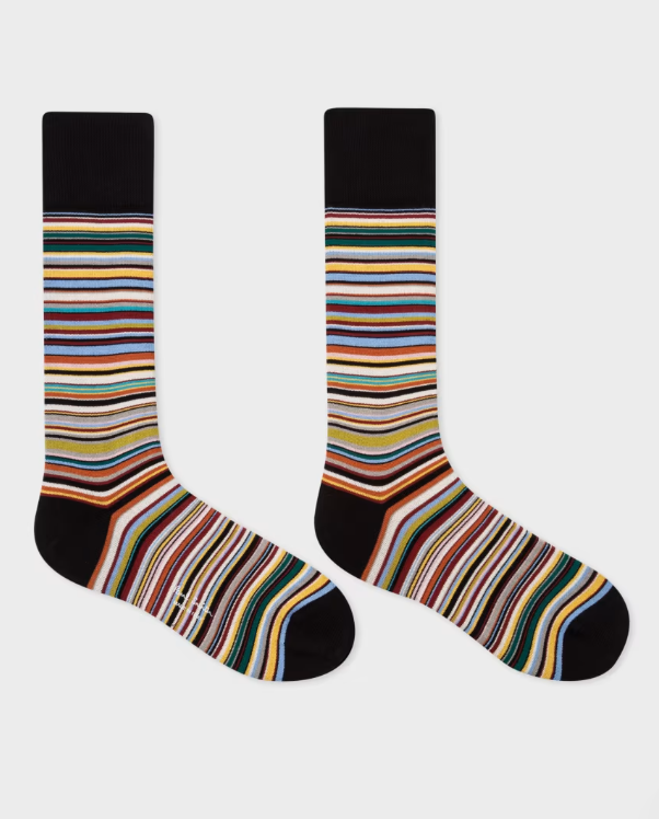 Paul Smith Calzini ‘Signature Stripe’ multicolor M1A 380CI JMSTRP92A CALZA RIGA MULTICOLOR Realizzati in Italia in morbido misto cotone e caratterizzati dall’iconica striscia ‘Signature Stripe’ di Paul Smith, questi calzini sono rifiniti con tallone e punta neri.