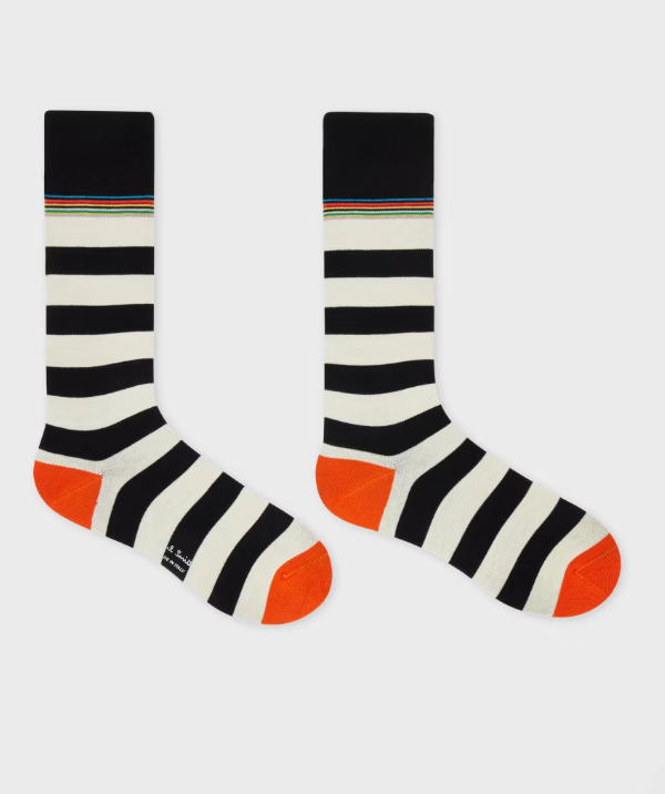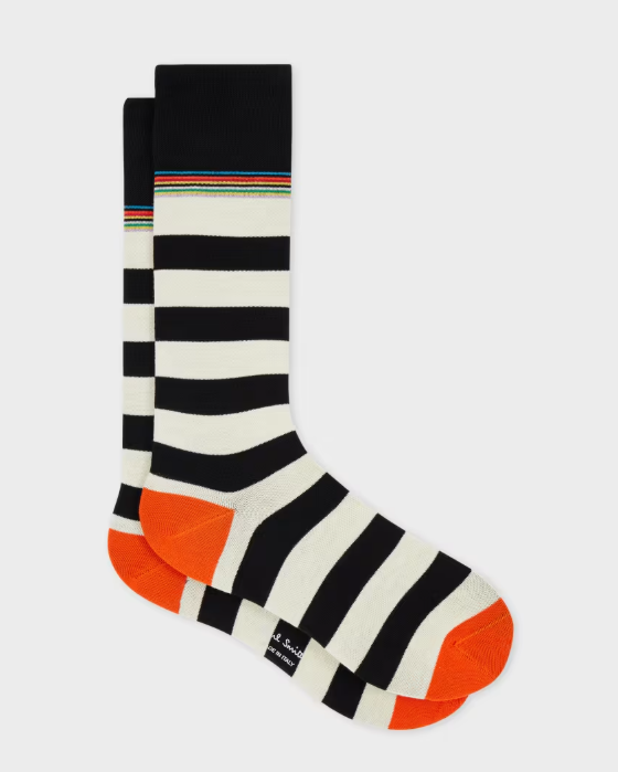 Paul Smith Calzini a righe bianche e nere M1A 380CI T69979 CALZA RIGA NERO Realizzati in Italia in morbido misto cotone, questi calzini a righe color block presentano una fascia a contrasto con la scritta ‘Signature Stripe’ intorno alla caviglia, perfetta per aggiungere un tocco di colore al tuo outfit quotidiano. Questi calzini sono completati da talloni e punte a contrasto. Materiale 82% cotone, 17% poliammide, 1% elastan Prodotto in Italia Codice prodotto M1A-380CI-T699-79 Informazioni sulla cura Lavabile in lavatrice Sostenibilità Almeno il 50% dei materiali utilizzati per realizzare questo prodotto ha un impatto ambientale ridotto. Se trovate il nostro logo Sun nei nostri negozi o online, significa che questo prodotto è stato realizzato con materiali a basso impatto ambientale.