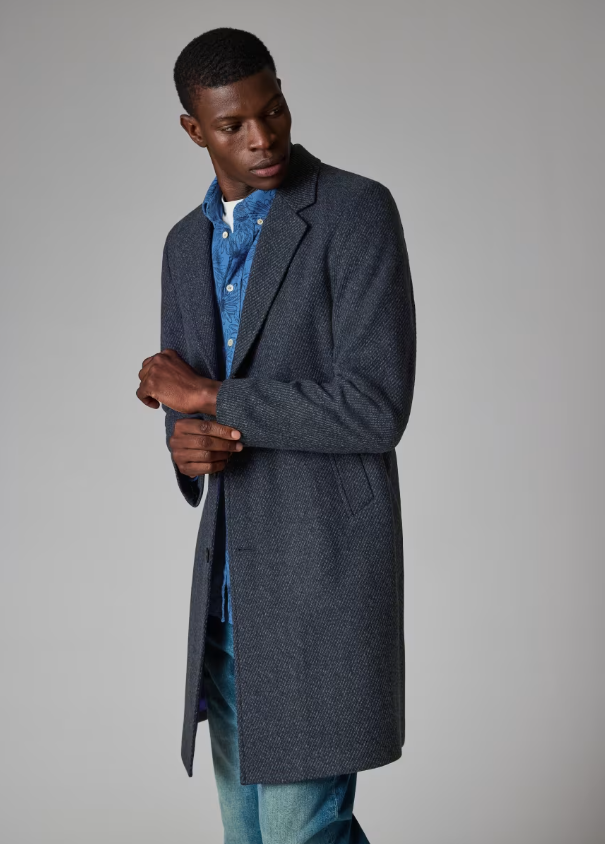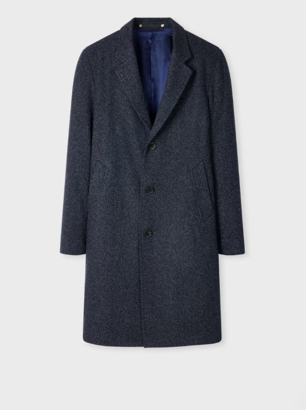 Paul Smith Cappotto in twill di misto lana blu navy testurizzato blu Realizzato in twill di misto lana riciclata, questo cappotto monopetto blu navy presenta una finitura testurizzata e piacevole al tatto. Ideale per le occasioni casual eleganti, questo cappotto è rifinito con una fodera completa per il massimo comfort. La dimensione La modella indossa una taglia M Misure della modella: Altezza 6’2½” / 189,5 cm | Torace 36½” / 93 cm | Vita 29” / 73,5 cm La vestibilità – Vestibilità regolare Materiale 58% lana riciclata, 32% poliestere, 5% poliammide, 5% cashmere Codice prodotto M2R-986U-T22485-48 Informazioni sulla cura Solo lavaggio a secco Sostenibilità Almeno il 50% dei materiali utilizzati per realizzare questo prodotto ha un impatto ambientale ridotto. Se trovate il nostro logo Sun nei nostri negozi o online, significa che questo prodotto è stato realizzato con materiali a basso impatto ambientale.